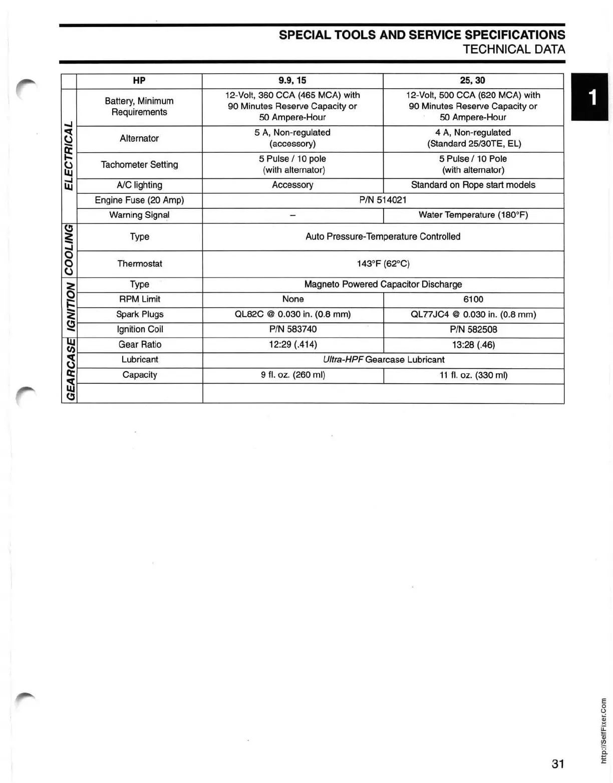 SPECIAL TOOLS AND SERVICE SPECIFICATIONS