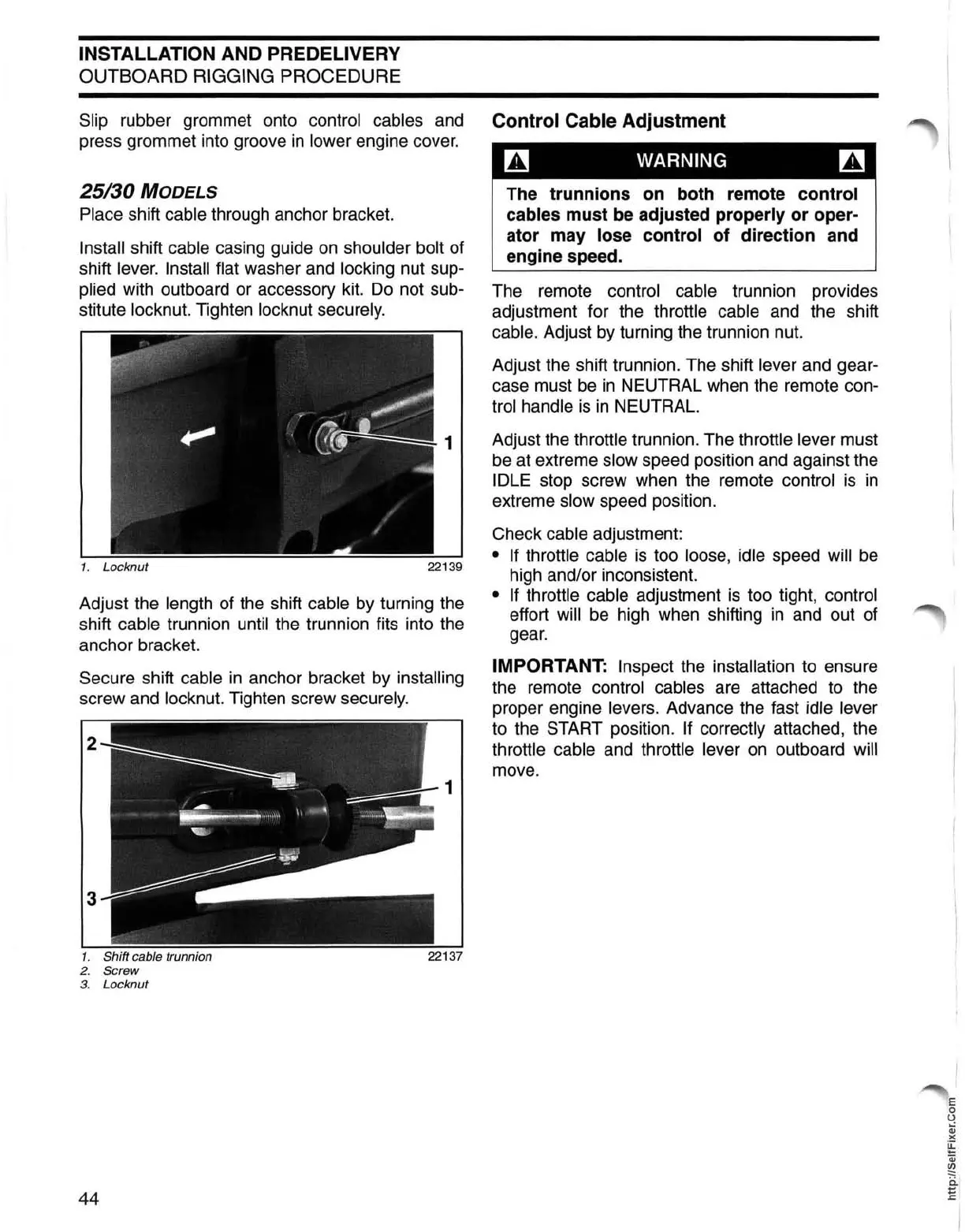 cable. Adjust by turning the trunnion nut.