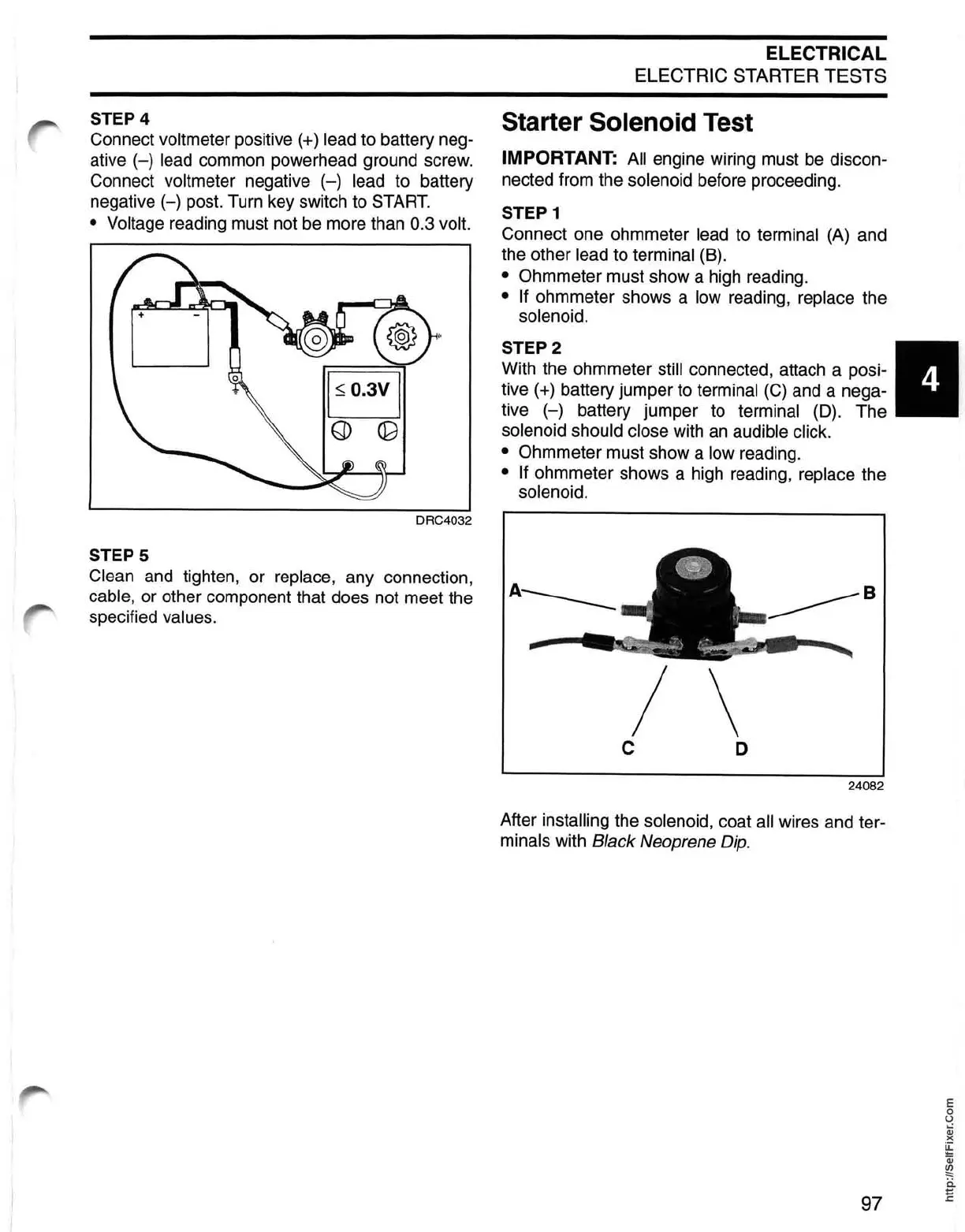 After installing the solenoid, coat all wires and ter-