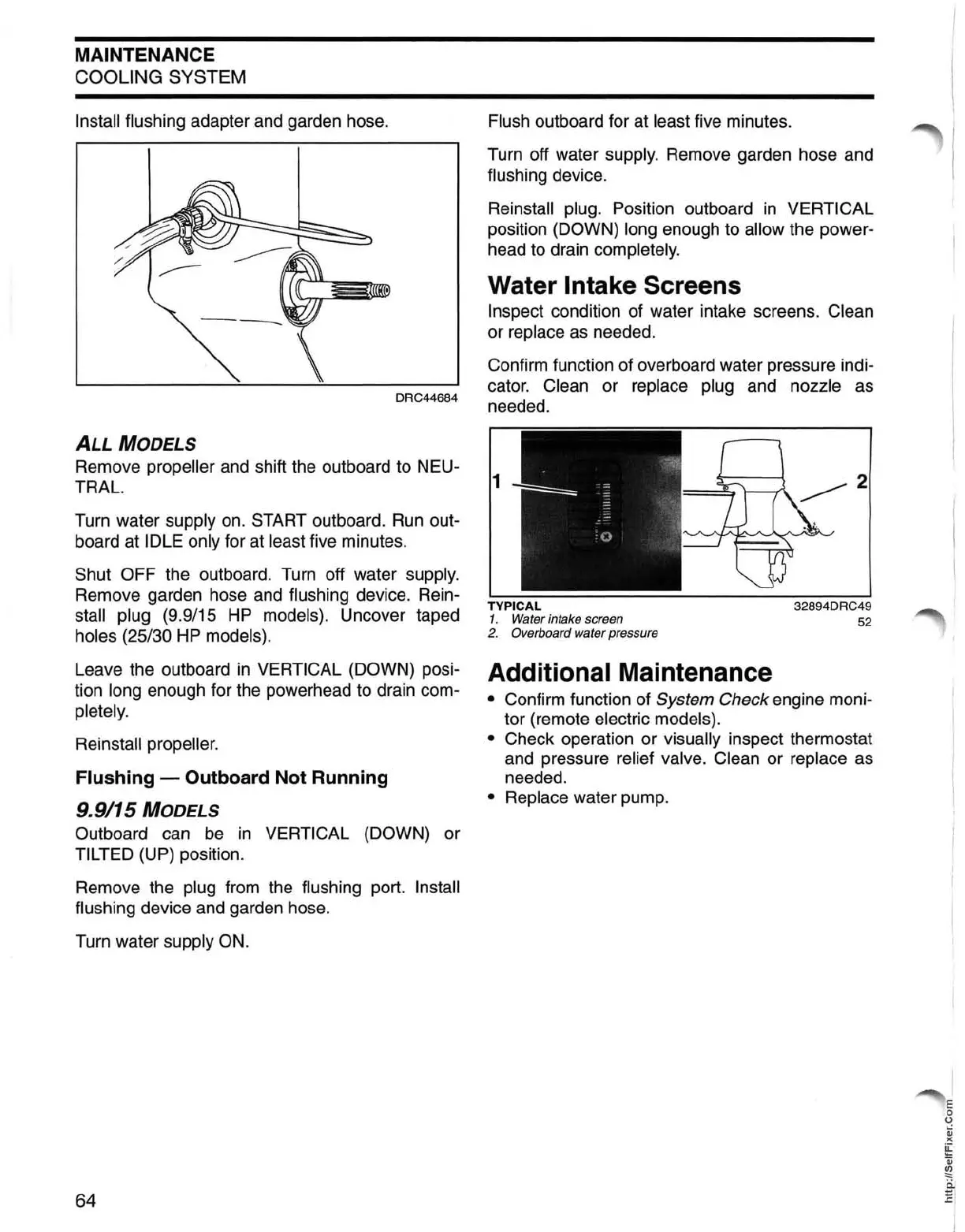 Johnson J25TESRA - Water Intake Screens; Additional Maintenance