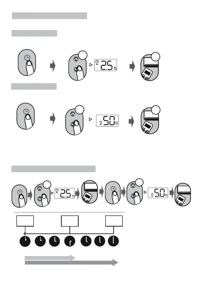 1. When setting the TIMER ON or TIMER OFF, the time will increase by 30 minutes increments