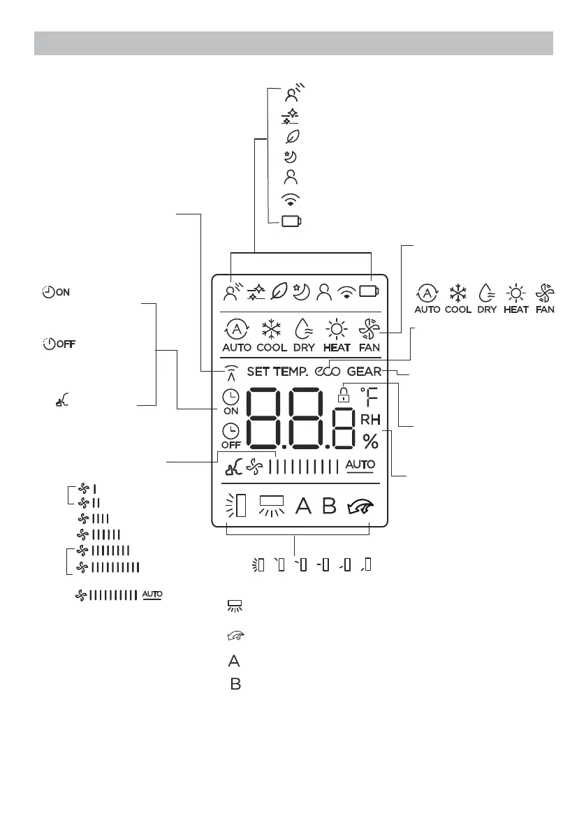 La información se muestra en la pantalla cuando se enciende el mando a distancia: