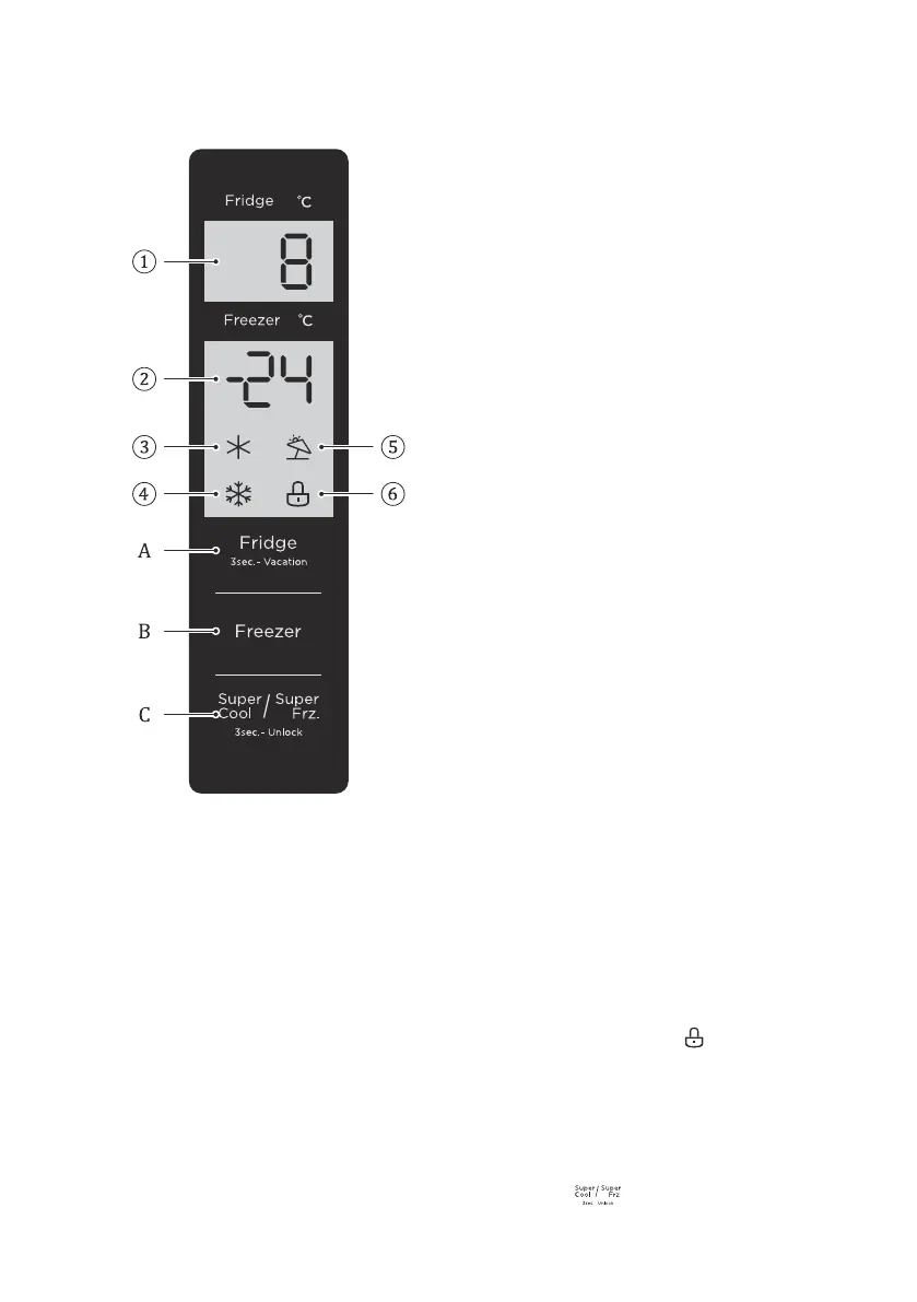 ② Área de exibição da temperatura da