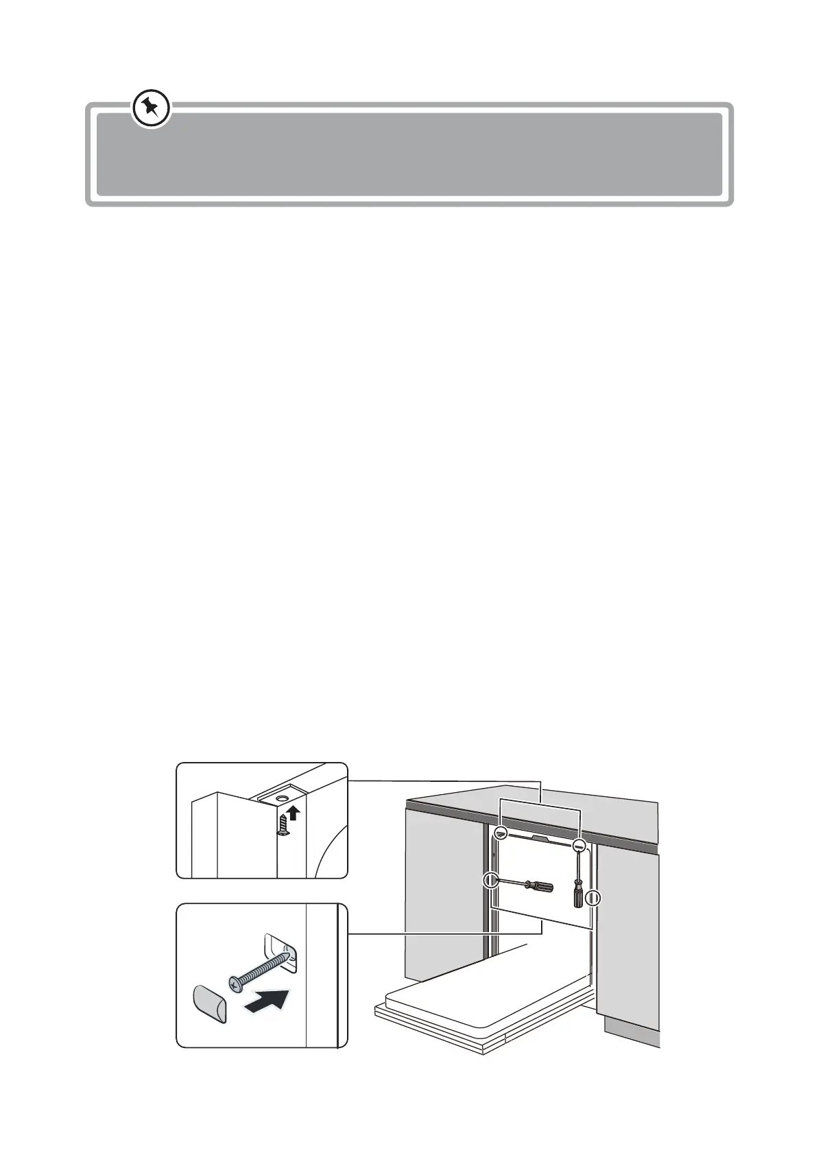 7.Install the furniture door to the outer door of the dishwasher. (Step