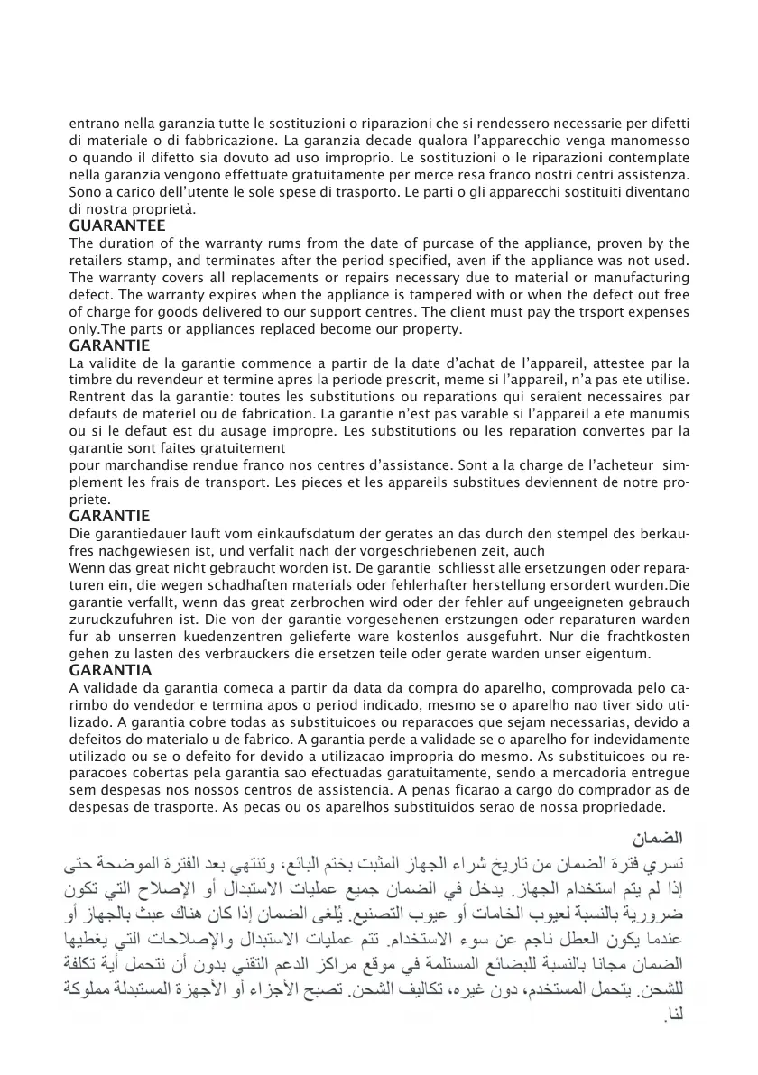 di materiale o di fabbricazione. La garanzia decade qualora l’apparecchio venga manomesso