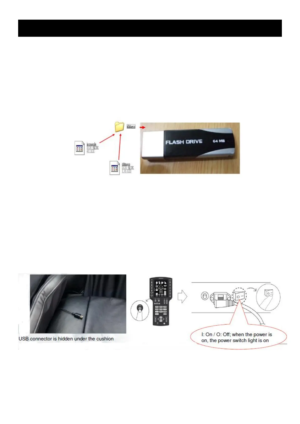 2) While the machine’s power is off, insert the flash drive with new software files to the USB