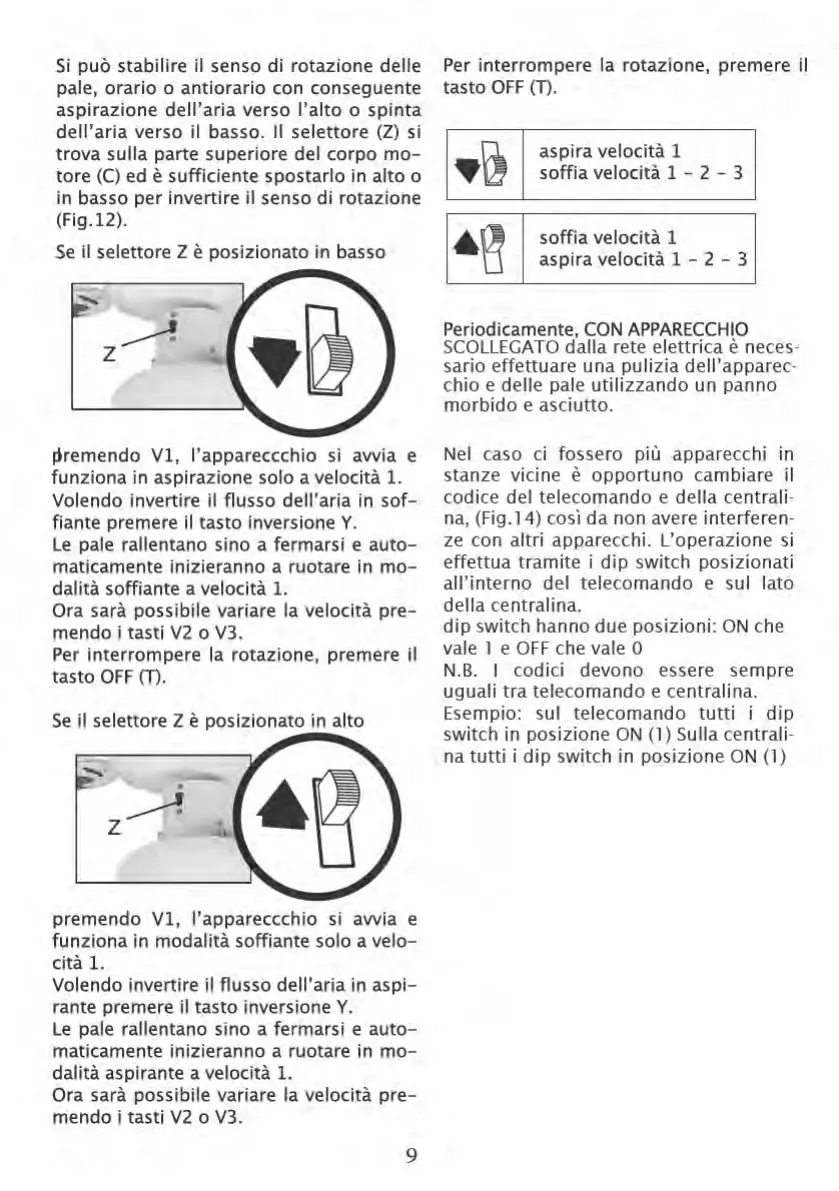 Johnson Medina - Fan Operation and Settings; Rotation Direction Selector; Operating Modes and Speeds; Interference Prevention