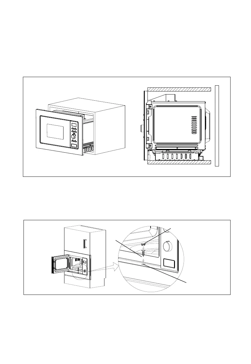 5. Abrir a porta, fixar o microondas ao armário com o