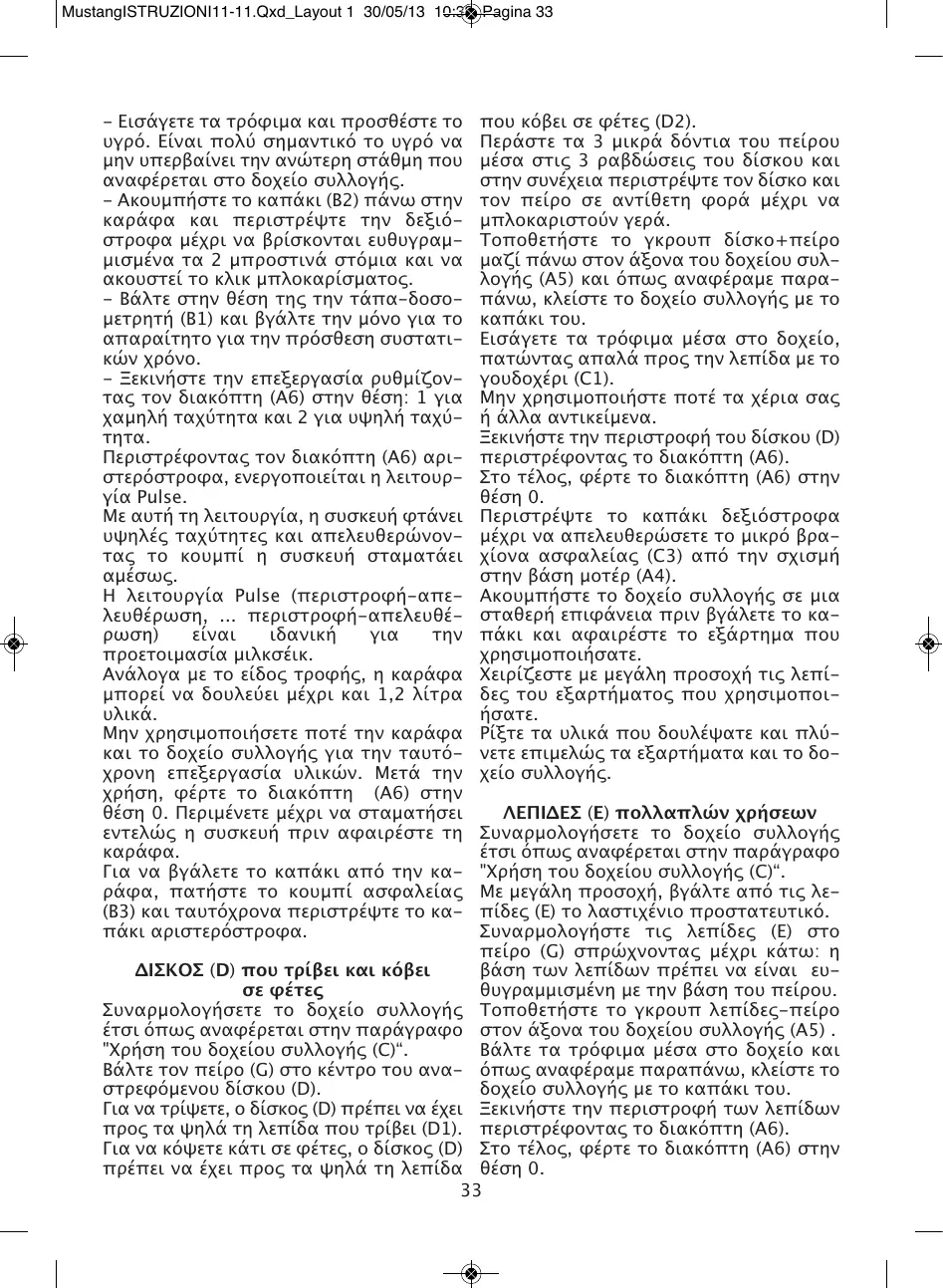 Για να τρίψετε, ο δίσκος (D) πρέπει να έχει