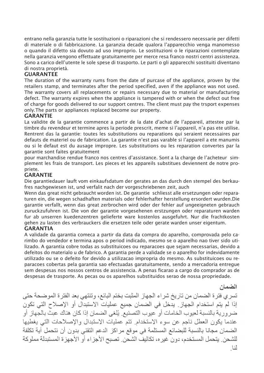 di materiale o di fabbricazione. La garanzia decade qualora l’apparecchio venga manomesso