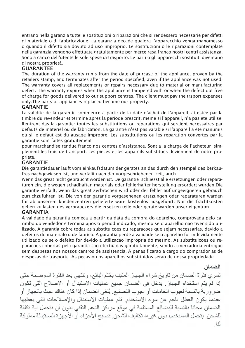 di materiale o di fabbricazione. La garanzia decade qualora l’apparecchio venga manomesso