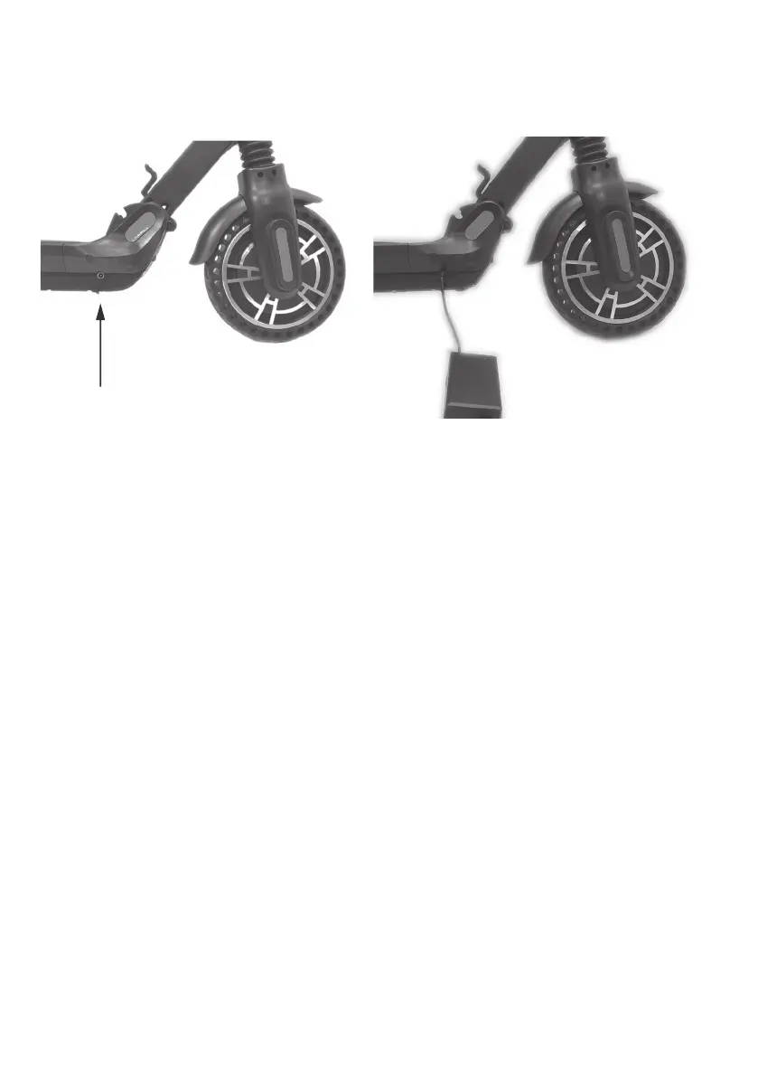 Per ricaricare la batteria è sufficiente inserire il caricatore nello spazio sotto la pedana