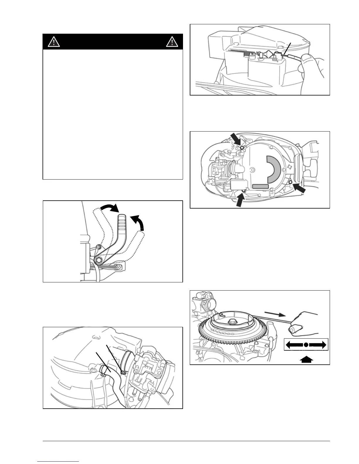 DO NOT turn flywheel by hand. Use starter