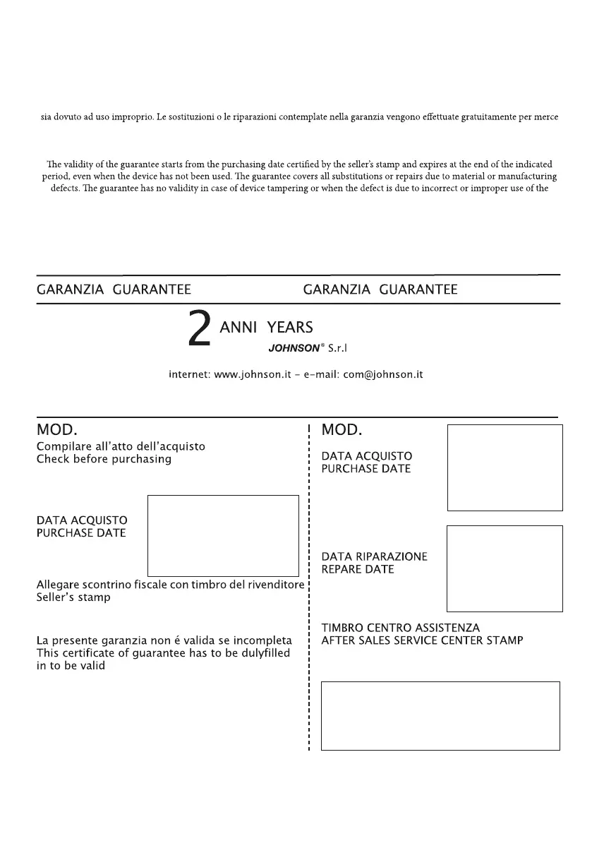 La durata della garanzia decorre dalla data di acquisto dell’apparecchio, comprovata dal timbro del rivenditore e cessa dopo il periodo