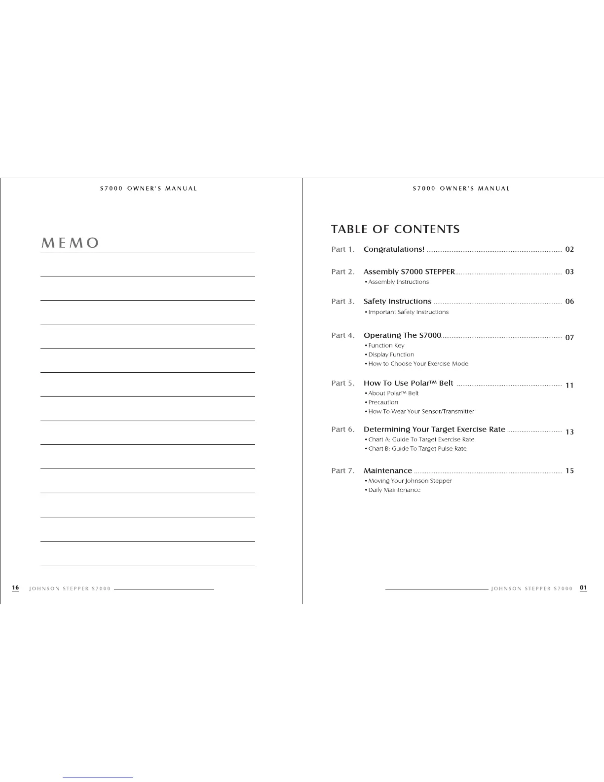 Johnson S7000 - Table of Contents