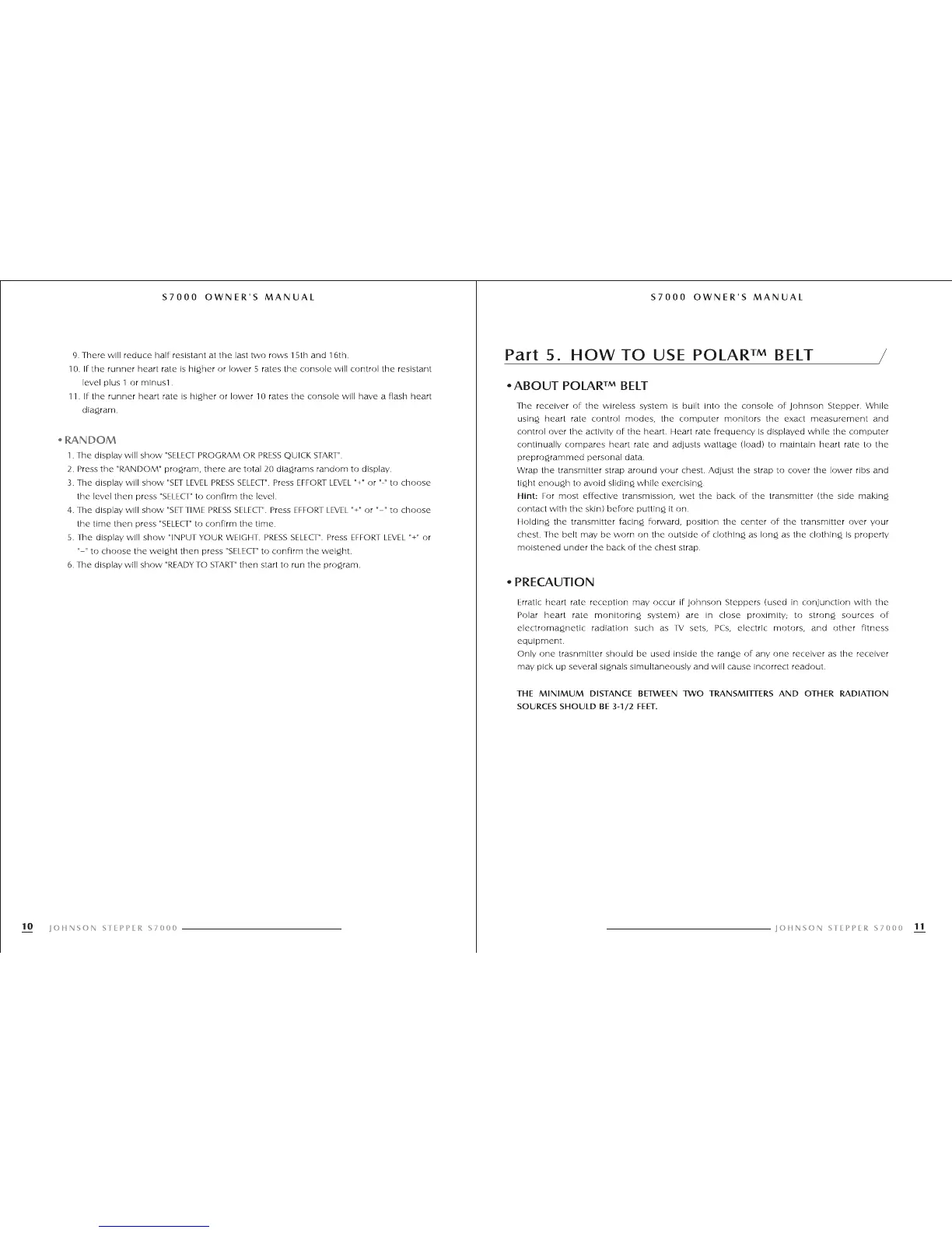 Johnson S7000 - How to Use Polar Belt; About Polar Belt; Precaution; Random