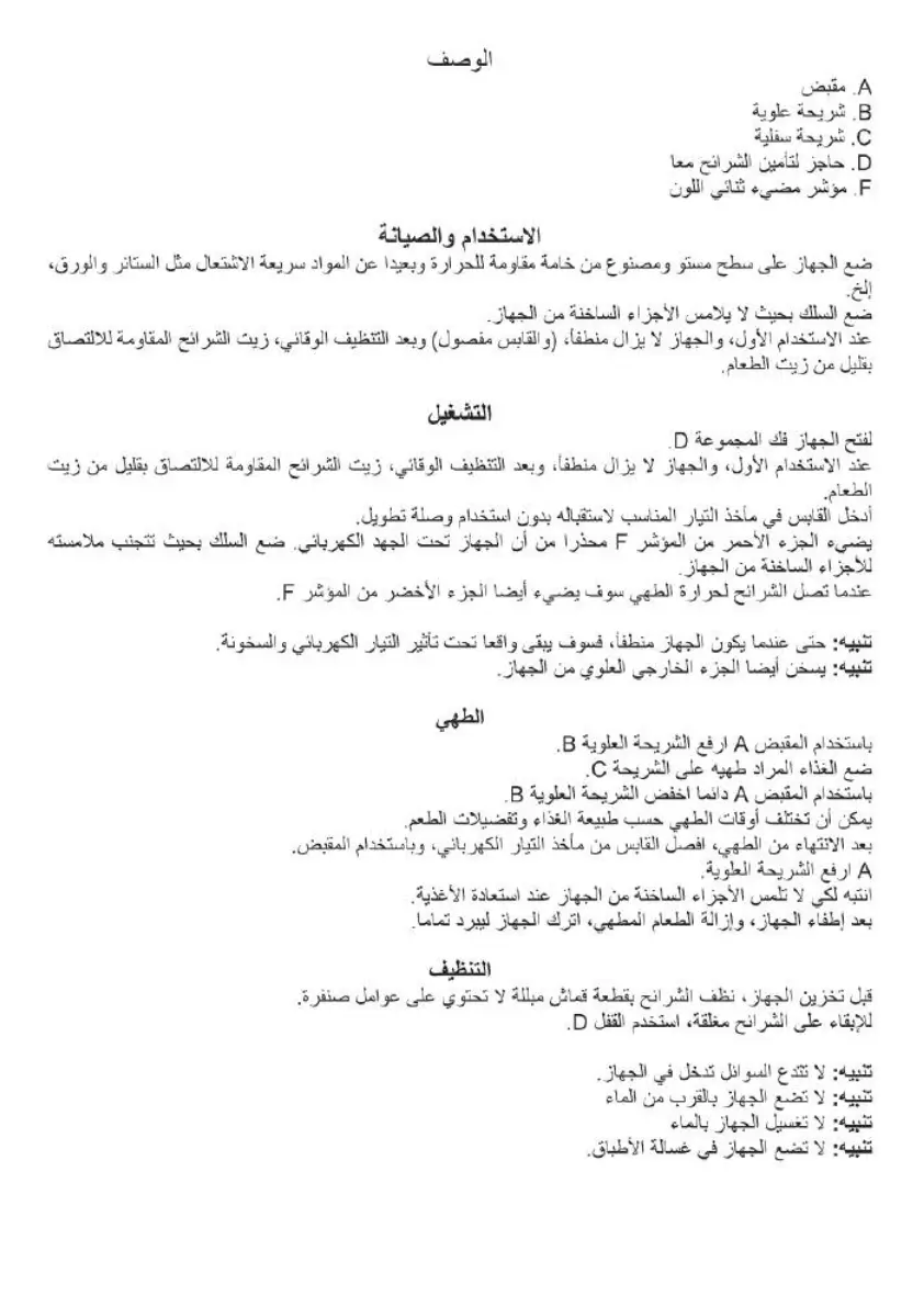 Johnson Sandwich - Appliance Usage and Care; Parts Description; Initial Setup and Maintenance; Starting and Operating the Appliance