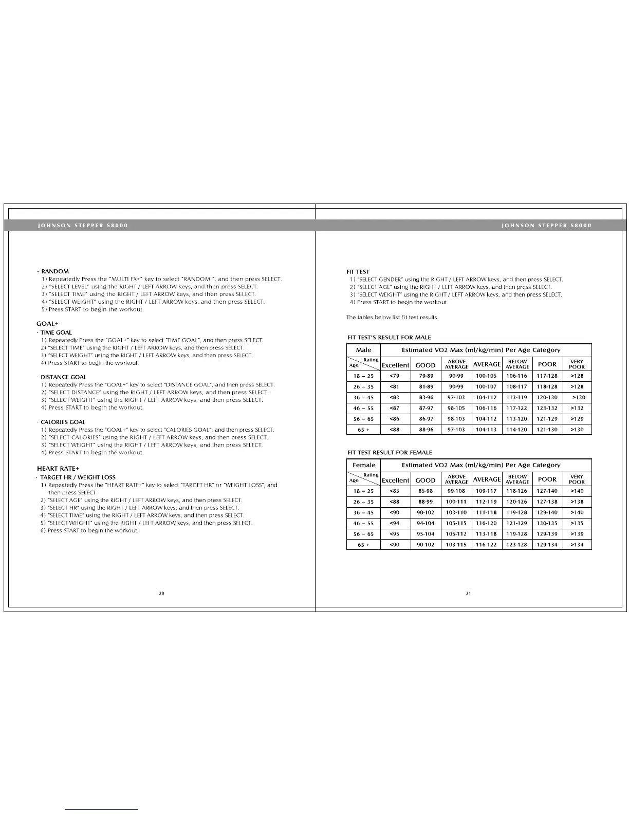 Johnson Stepper S8000 - Random; Time Goal; Distance Goal; Calories Goal