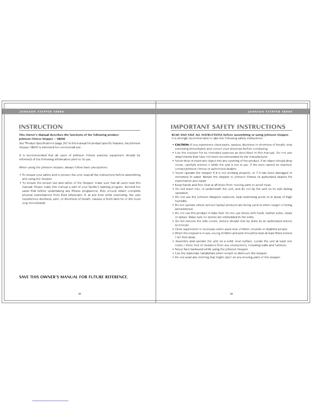 Johnson Stepper S8000 - Instruction; Important Safety Instructions