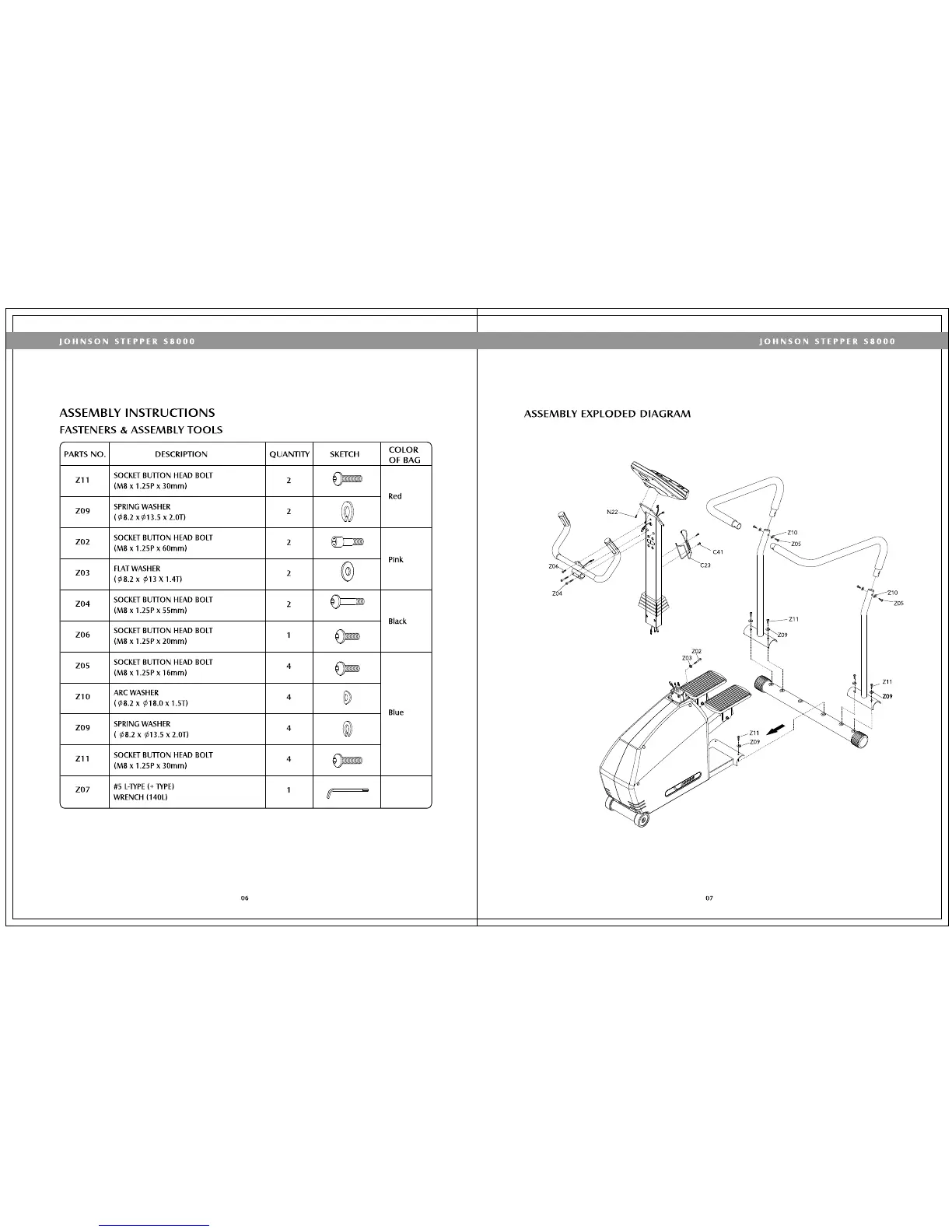 Johnson Stepper S8000 - Fasteners & Assembly Tools; Assembly Exploded Diagram