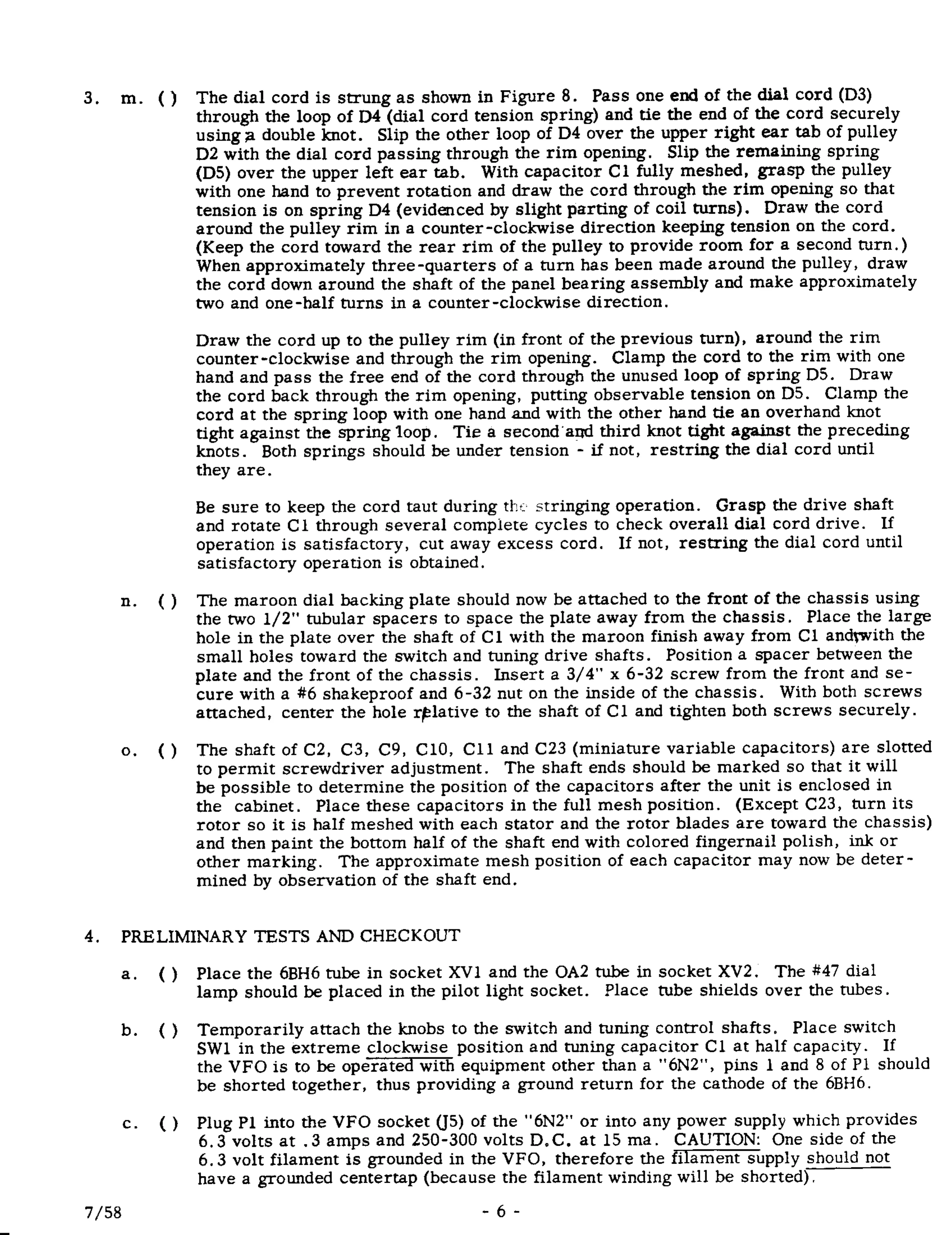 Johnson VIKING 6N2 - Preliminary Tests and Checkout; Tube and Lamp Installation Guide; Initial VFO Functional Checks