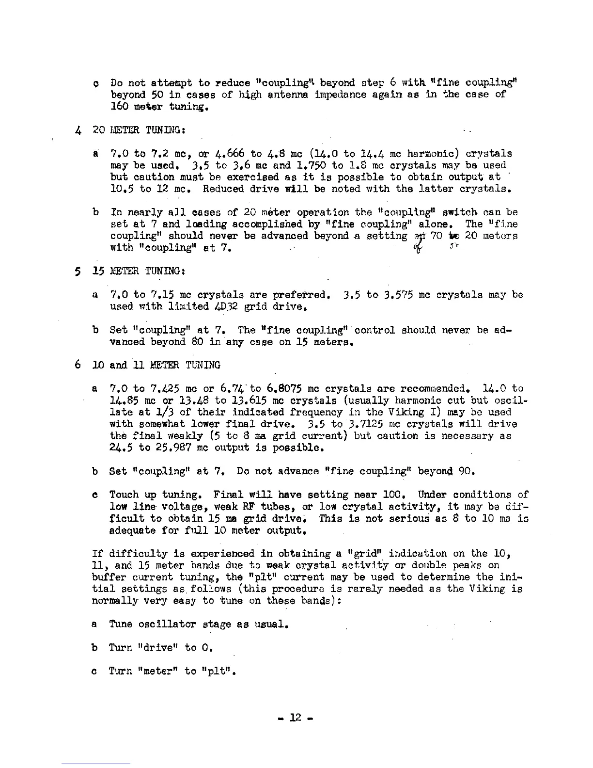 Johnson Viking I - 20 Meter Tuning; 15 Meter Tuning; 10 And 11 Meter Tuning