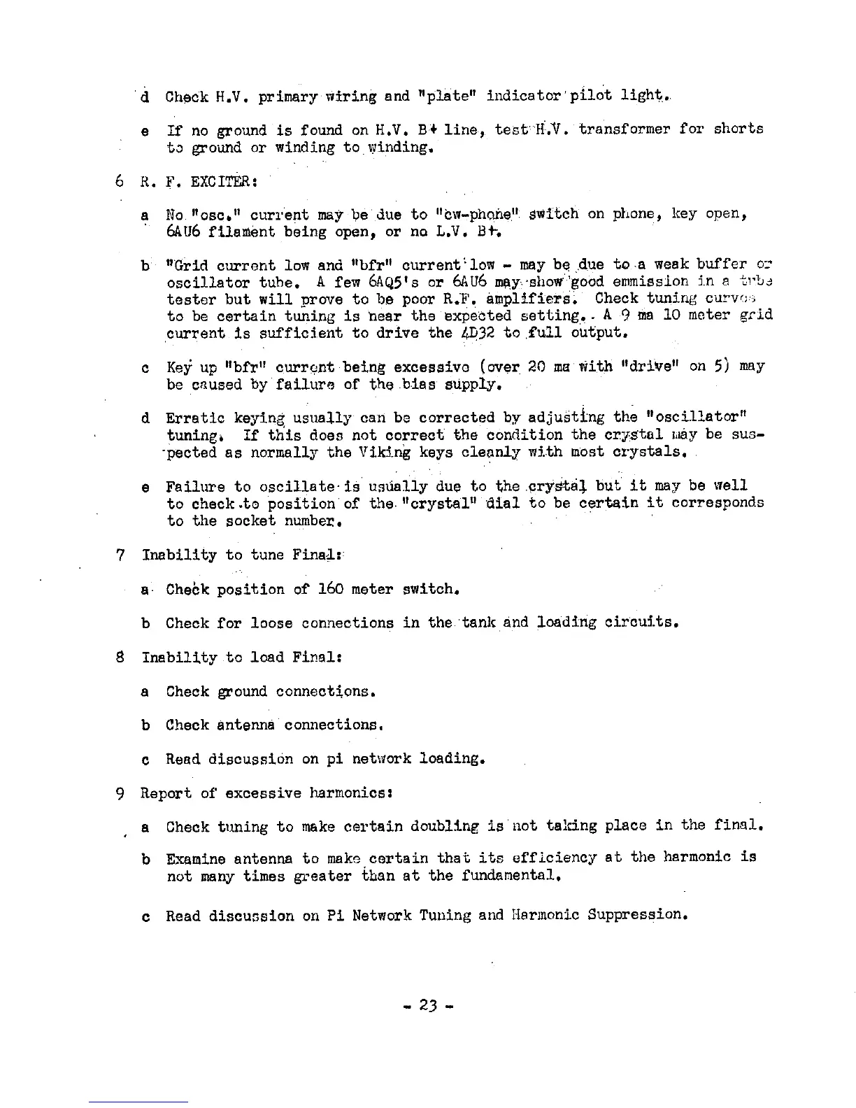Johnson Viking I - R.F. Exciter; Inability to Tune Final; Inability to Load Final; Report of Excessive Harmonics