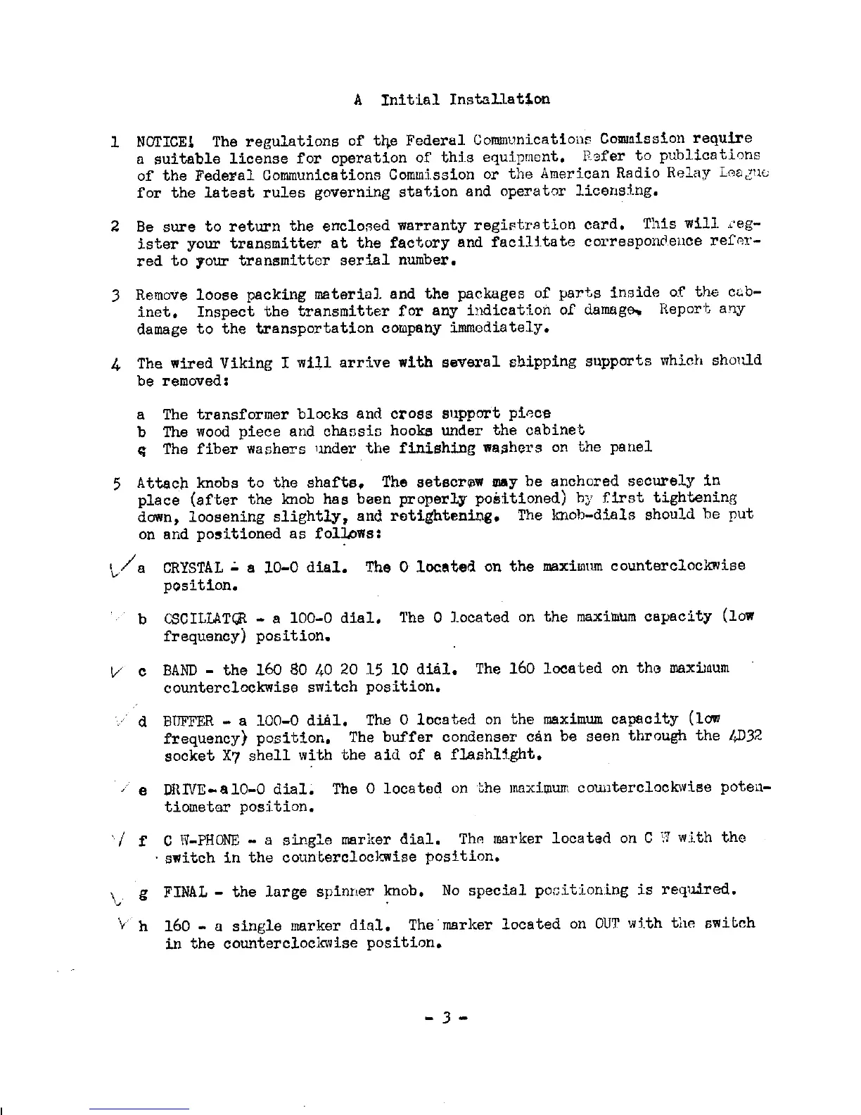 Johnson Viking I - Initial Installation Procedures