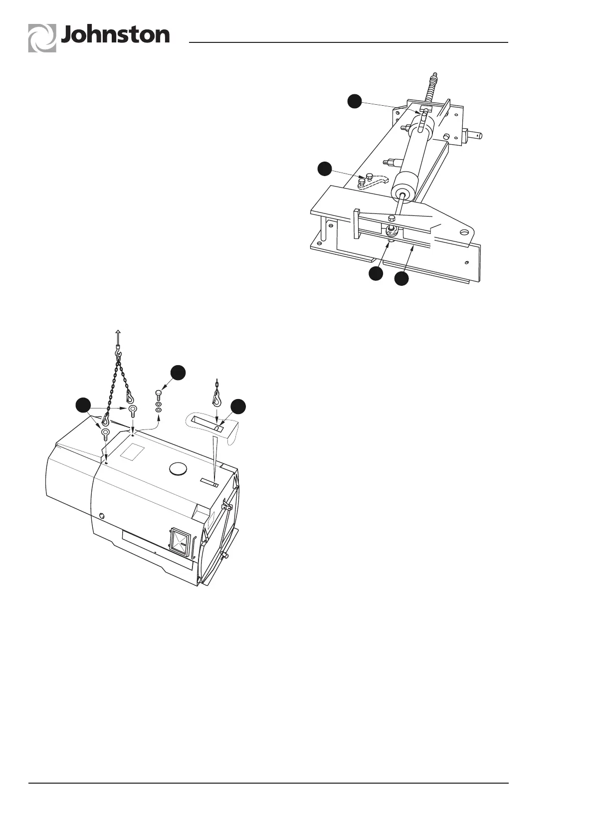 2. Insert suitable eye bolts item (B) into the M16