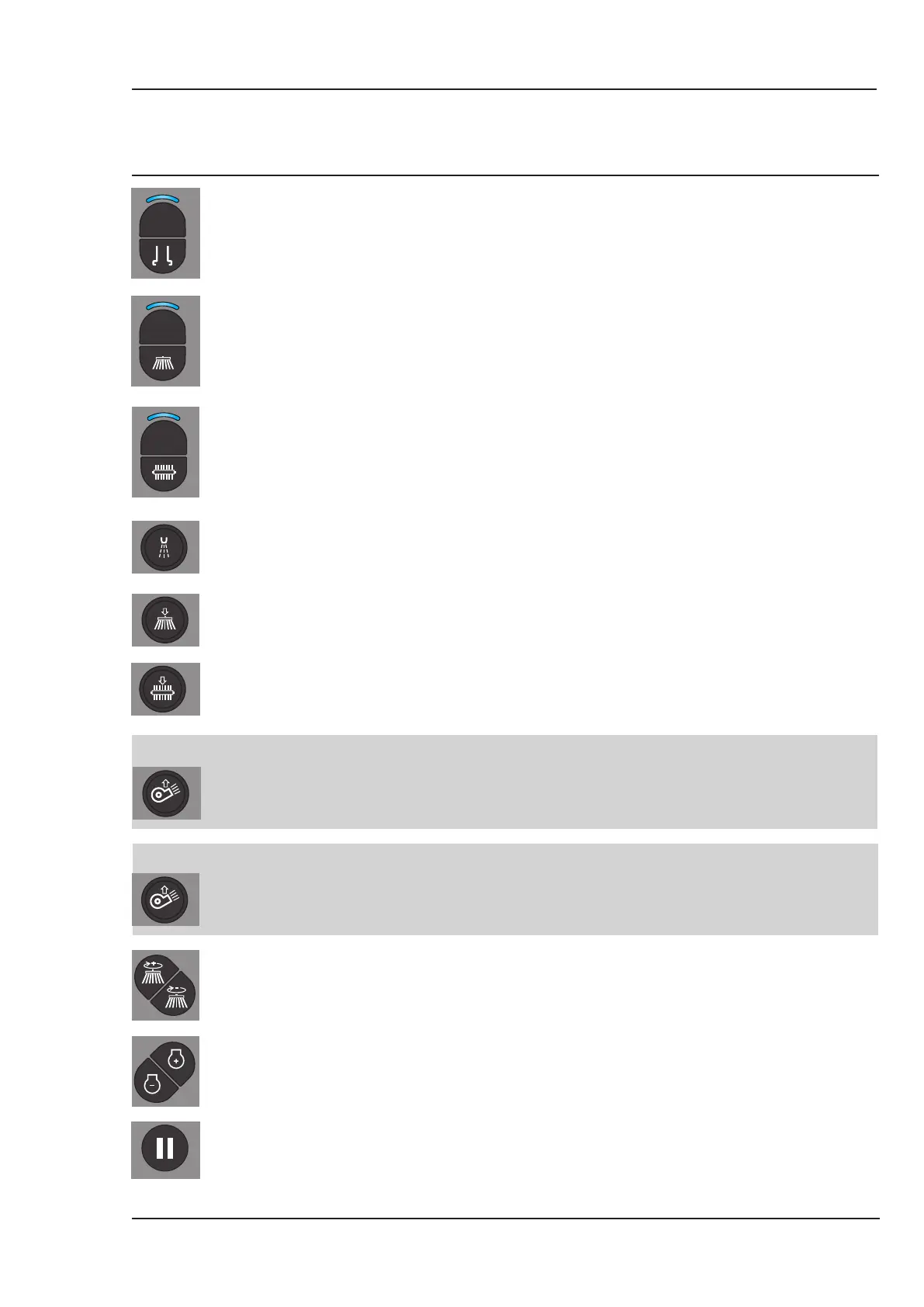 Water sprays; - ON/OFF Illuminated when selected