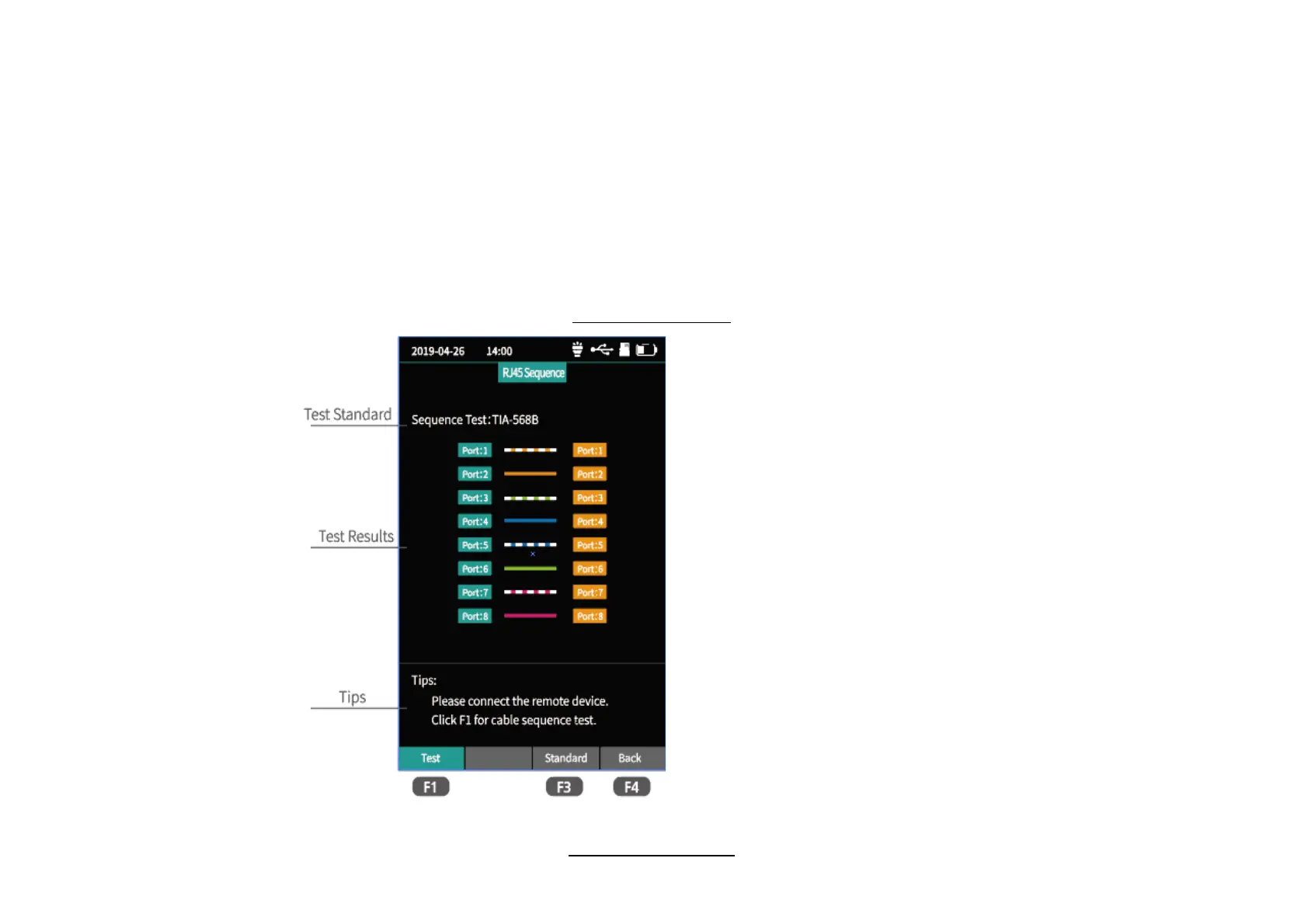 RJ45 line sequence measurement.