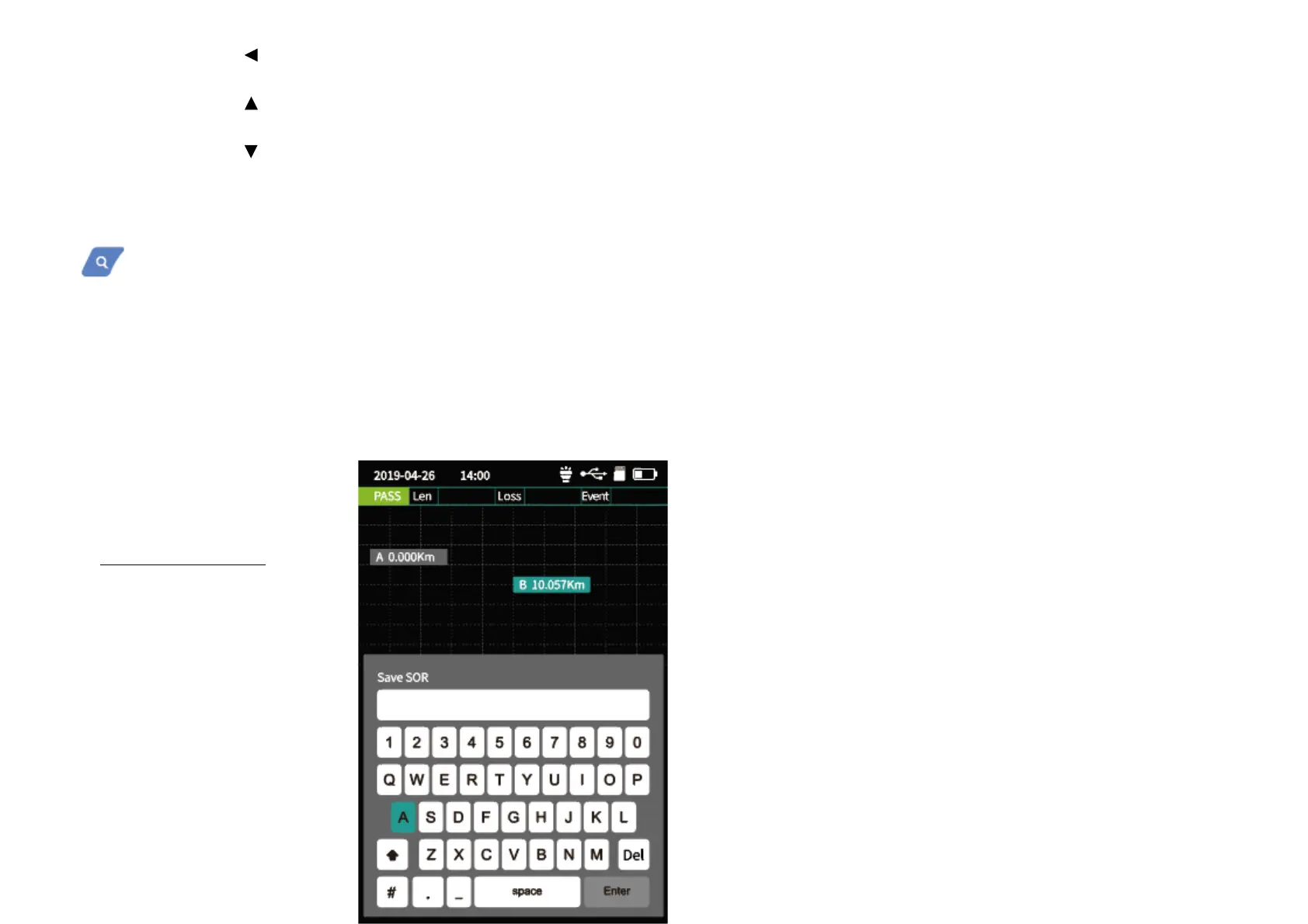 Press “F3” (Save) key to save file after test complete, pop up the keyboard, enter the
