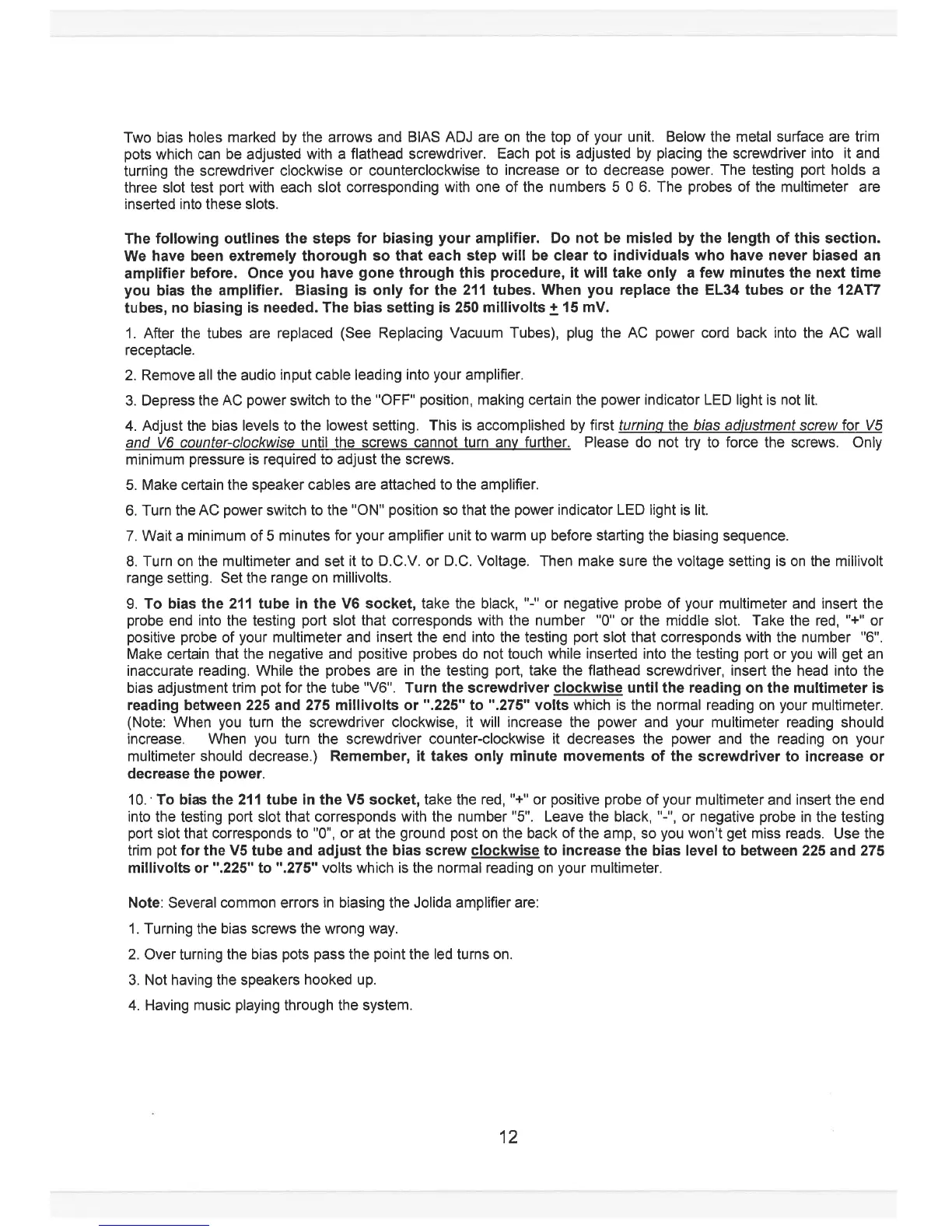 Jolida Fusion - Biasing Procedure Steps; Common Biasing Errors