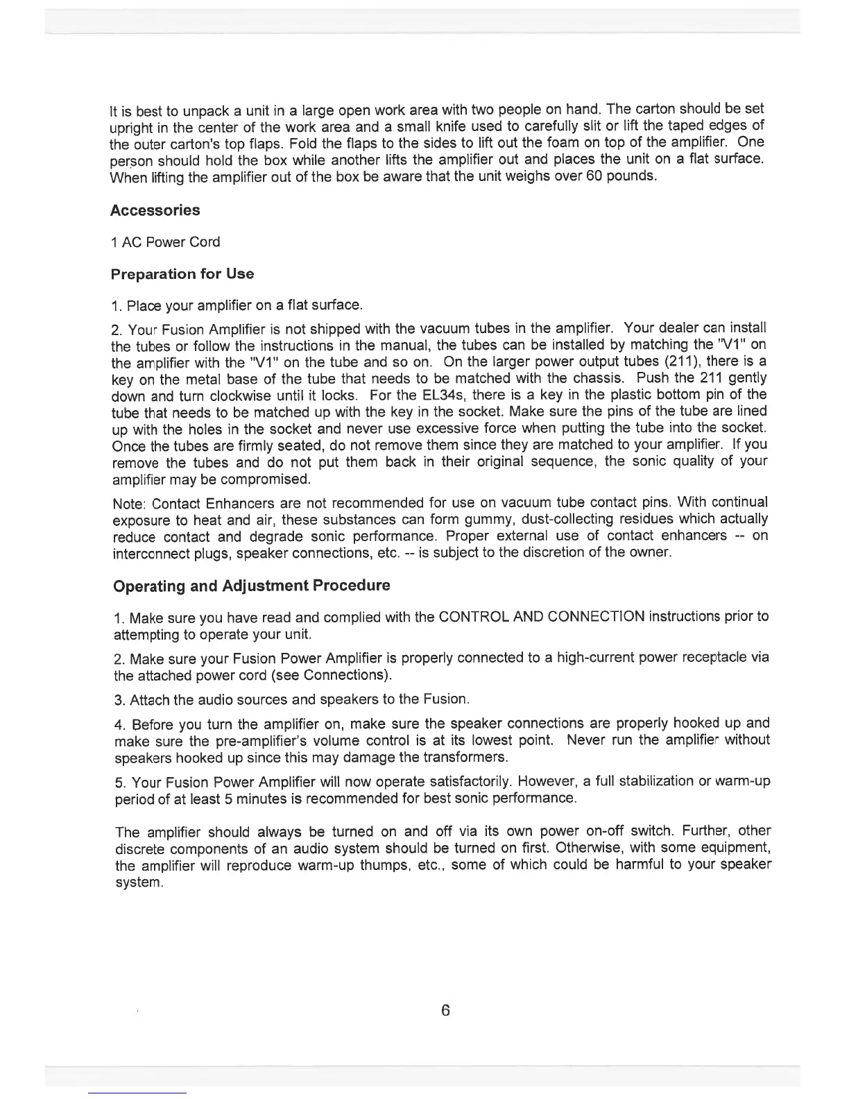 Jolida Fusion - Preparation for Use; Operating and Adjustment Procedure