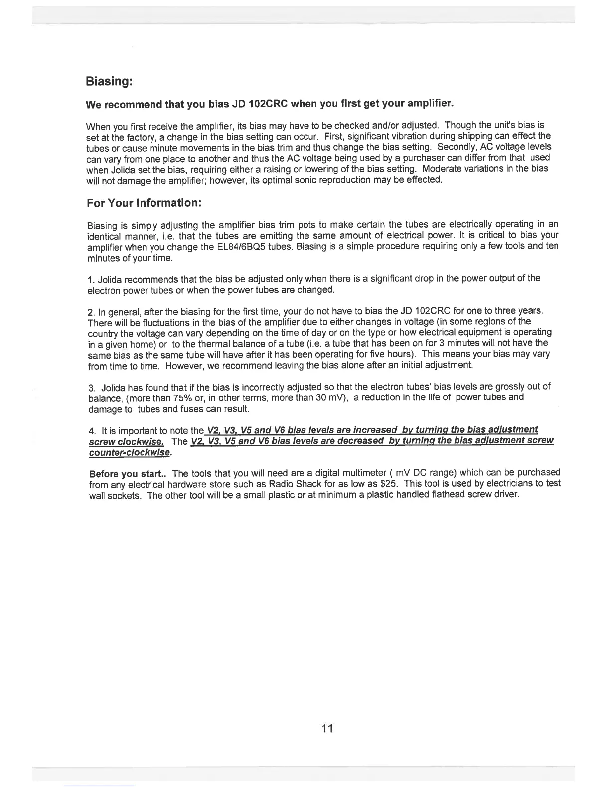 Jolida JD 102CRC - Biasing; Biasing Procedure and Tools