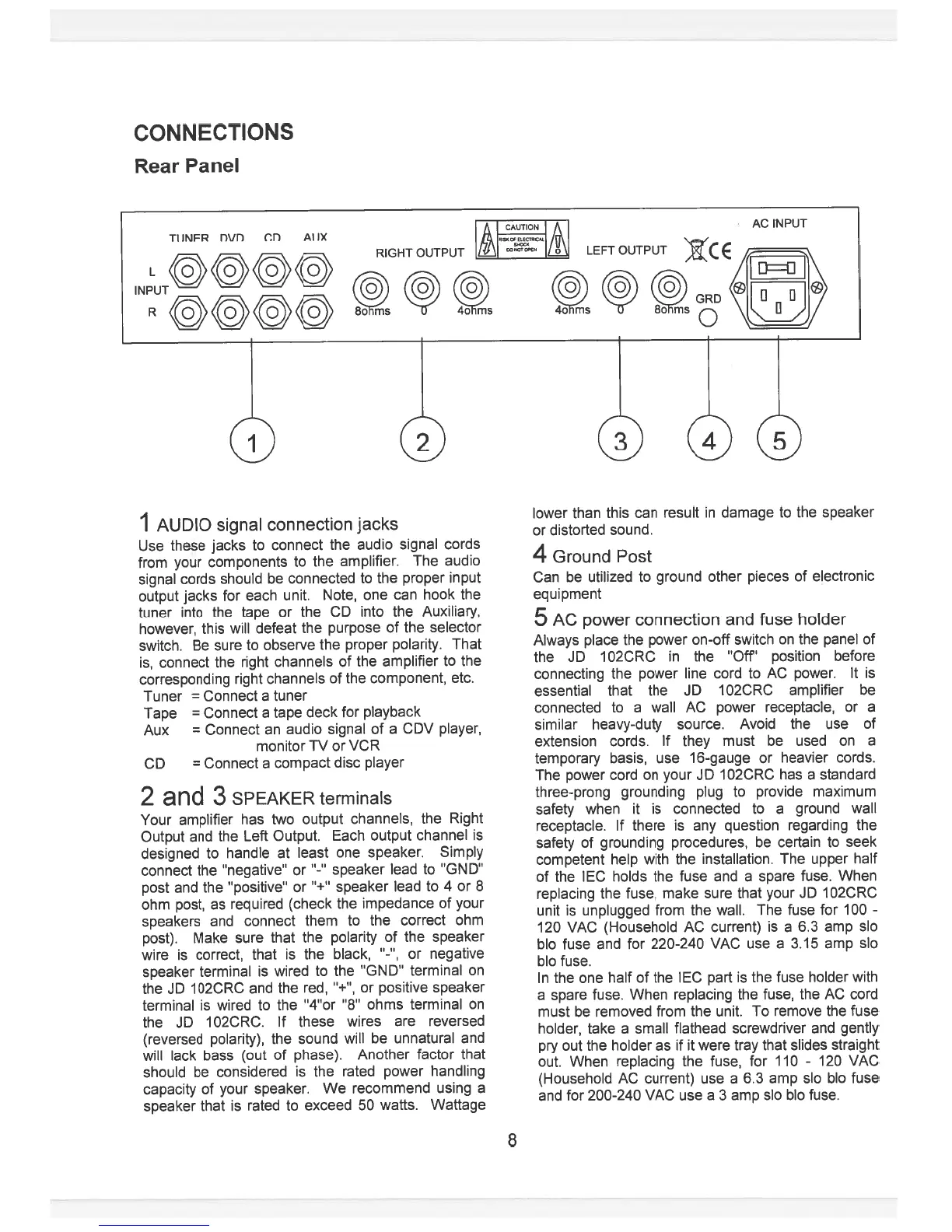 Jolida JD 102CRC - Connections; Rear Panel Connections