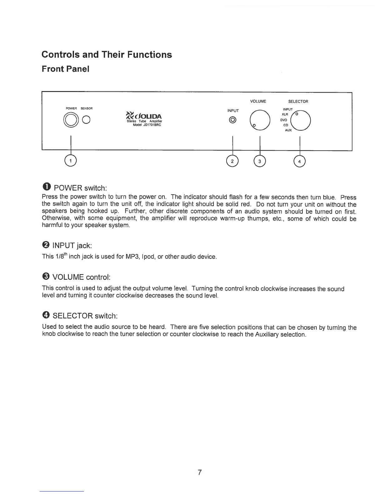 Jolida JD 1701BRC - Front Panel Controls; Power Switch and Indicator