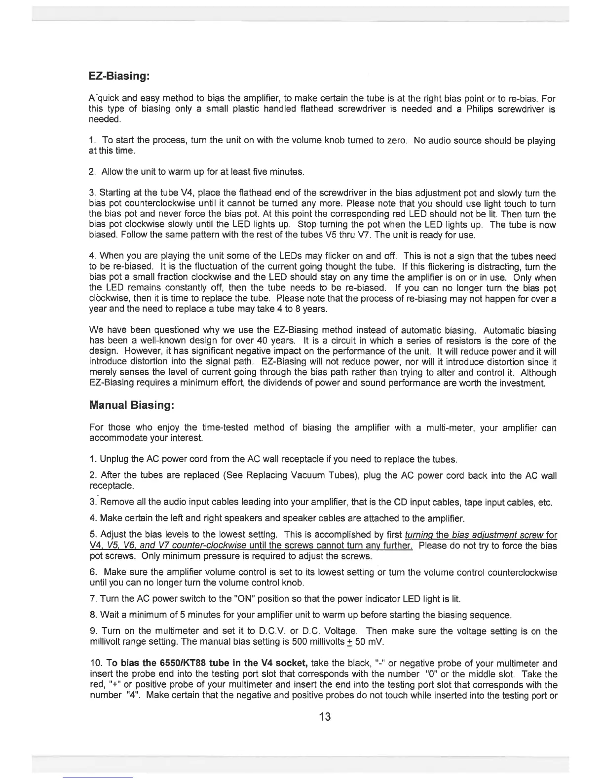 Jolida JD 801BRC - EZ-Biasing Method; Manual Biasing Method