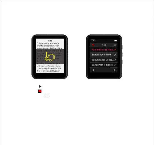 Sur l'interface de lecture des livres électroniques. Faites glisser votre doigt sur l'écran