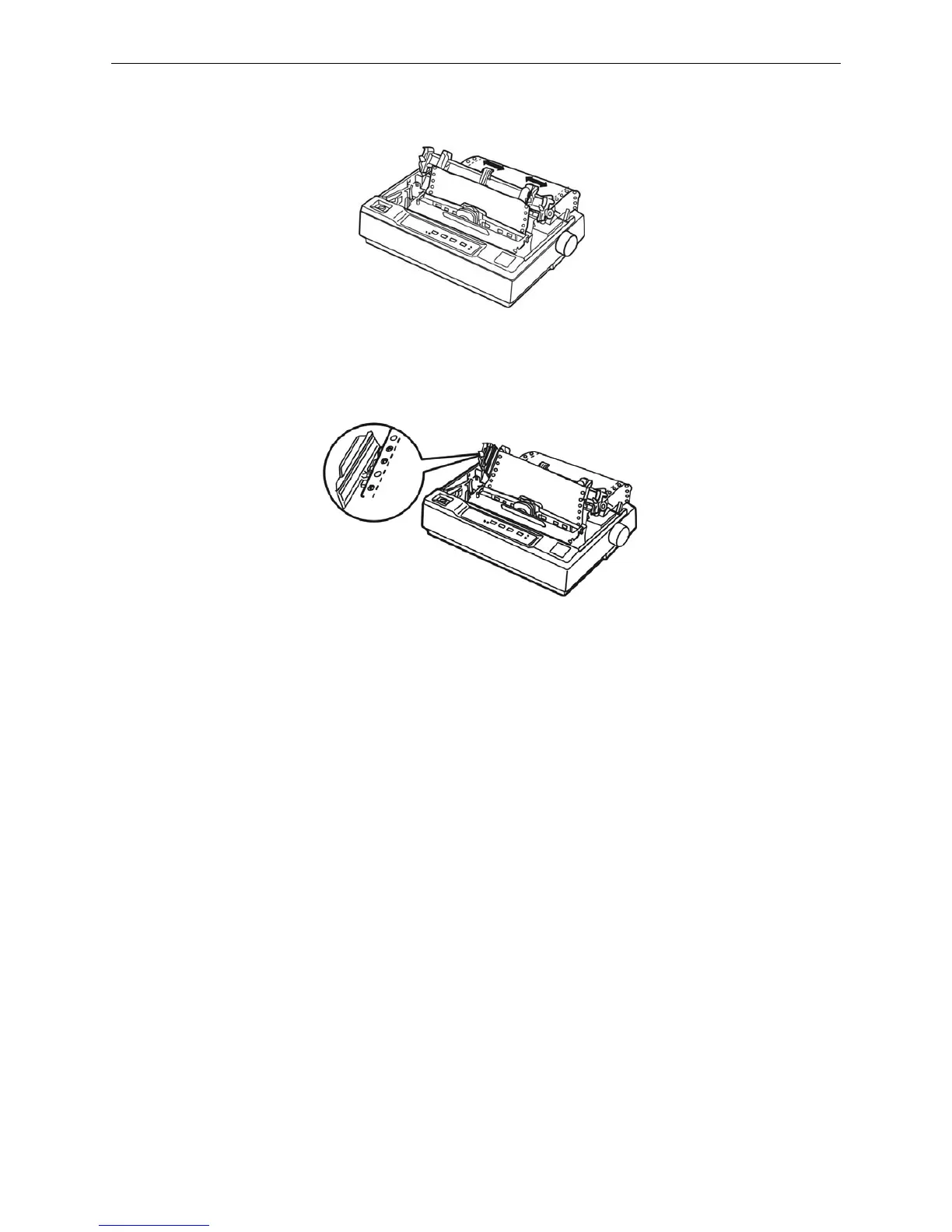 upwards, adjust the left and right sprockets unit they match the width of your paper. Then clip the