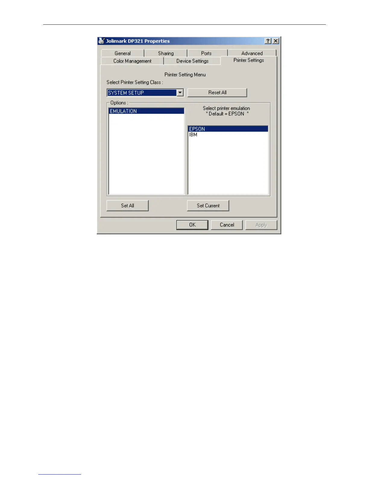5. The setting way is corresponding with that of printer menu system. In the “Printer Settings” layout,
