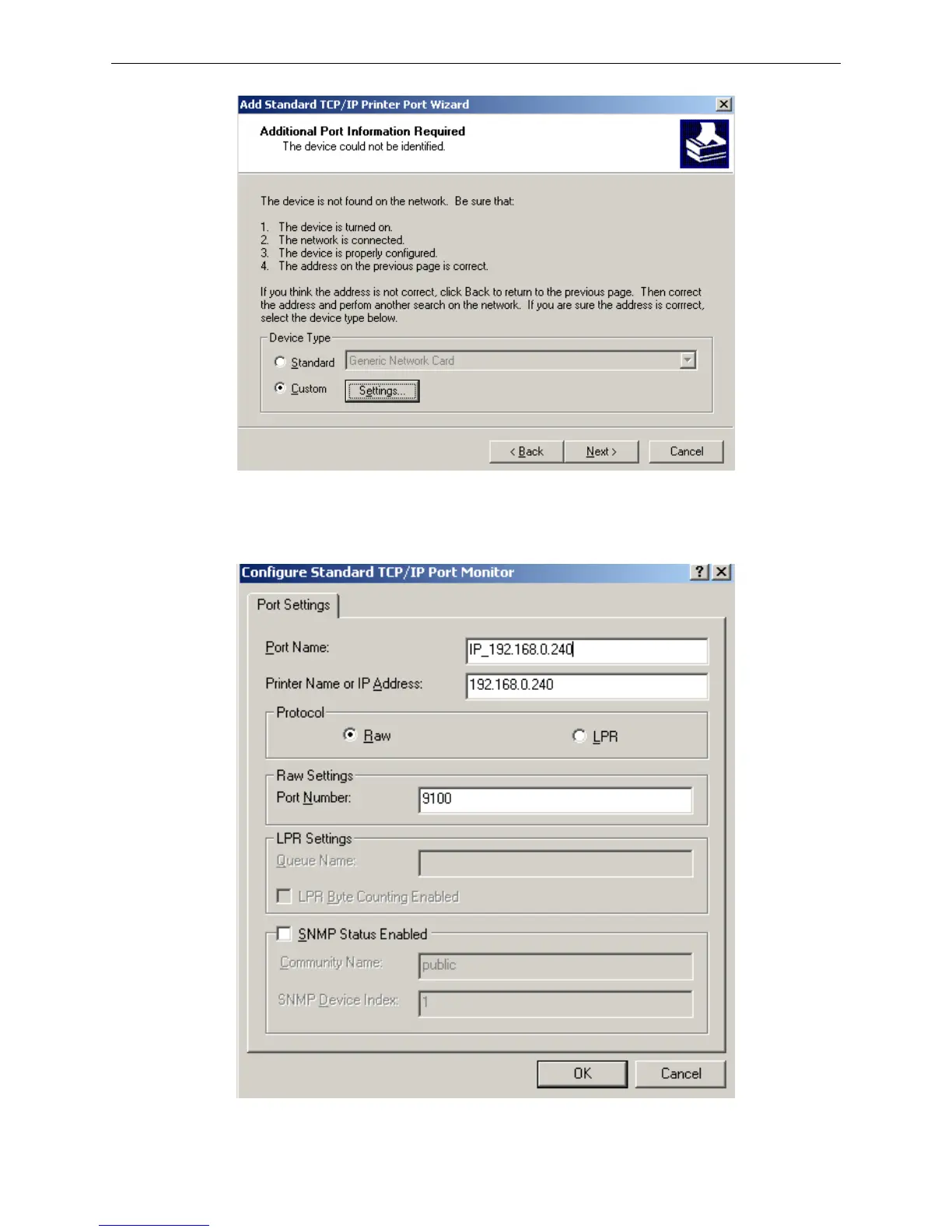 correct, “Protocol” is “RAW” and “Port Number” is “9100”, click “OK”.