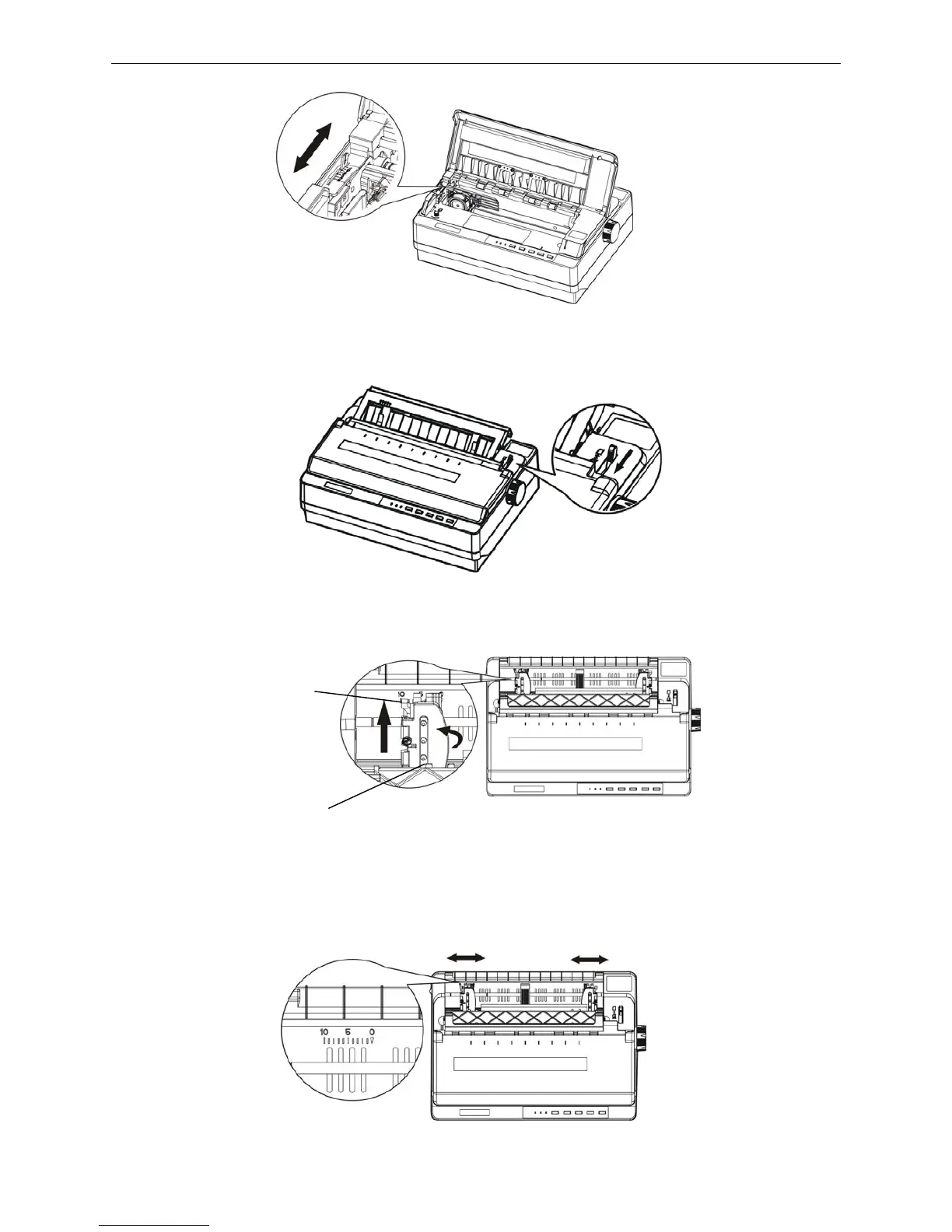 4. Slide the right paper guide referring to the scale on the printer. The printer prints to the right of the 0