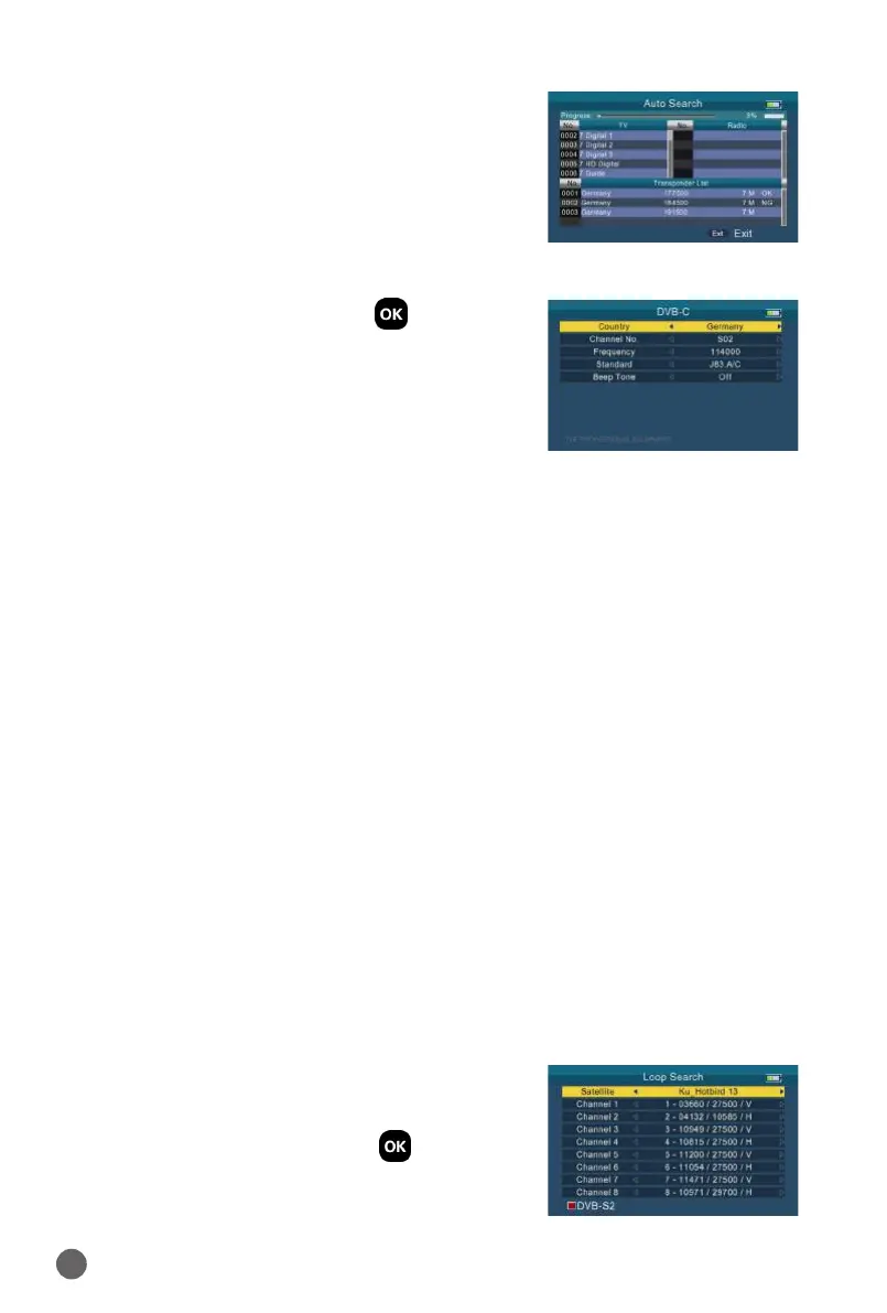 Select DVB-C, then press OK into the Scan