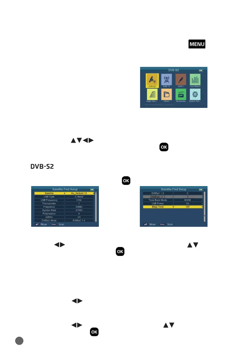 Selezionare DVB-S2, quindi premere OK in Impostazione ricerca satellite.