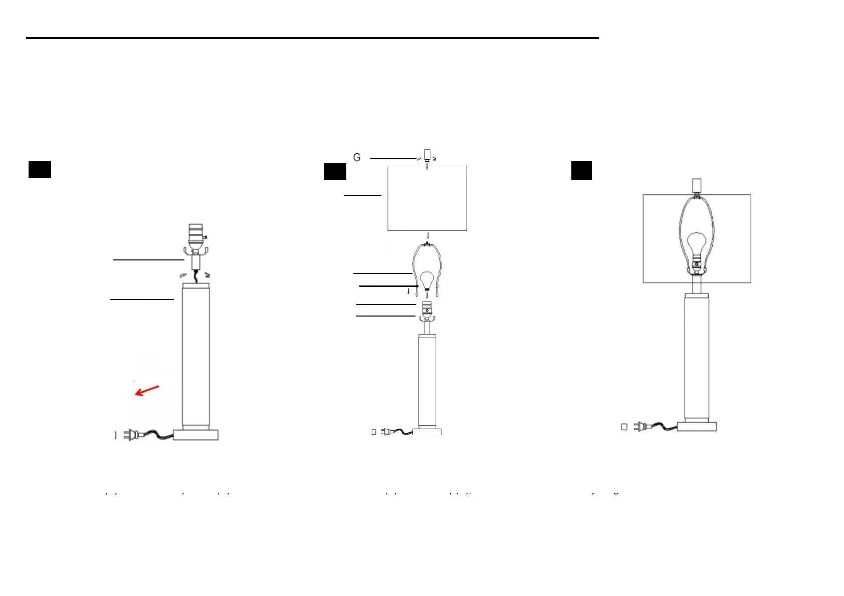 Screw the Neck (B) onto the Lamp base (A) Put the shade(F) on the Harp(E),then if everything is stable.