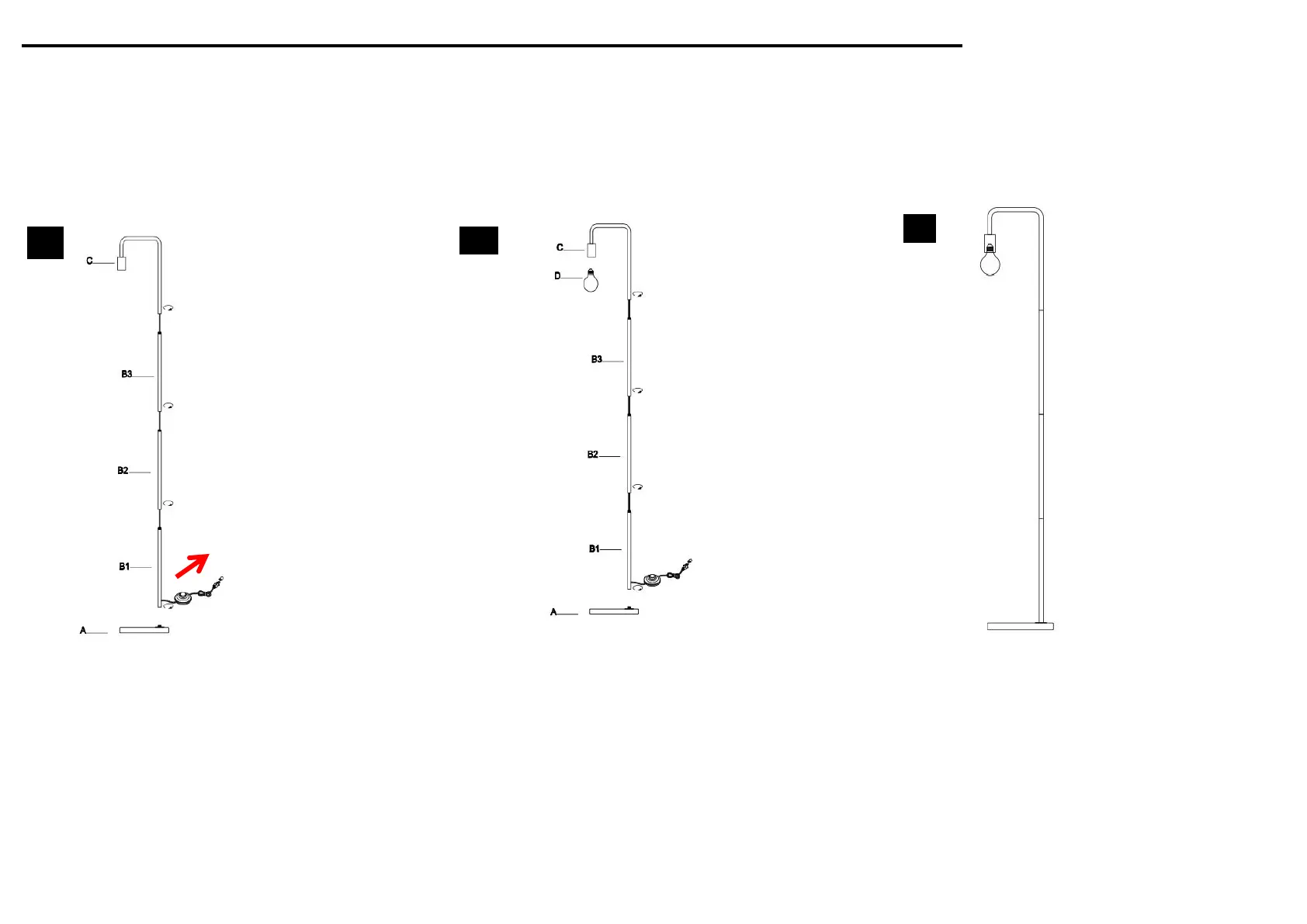 Make sure all parts could be aligned before assemble Insert the bulb (D) into the socket (C). Put the light on a level surface to check