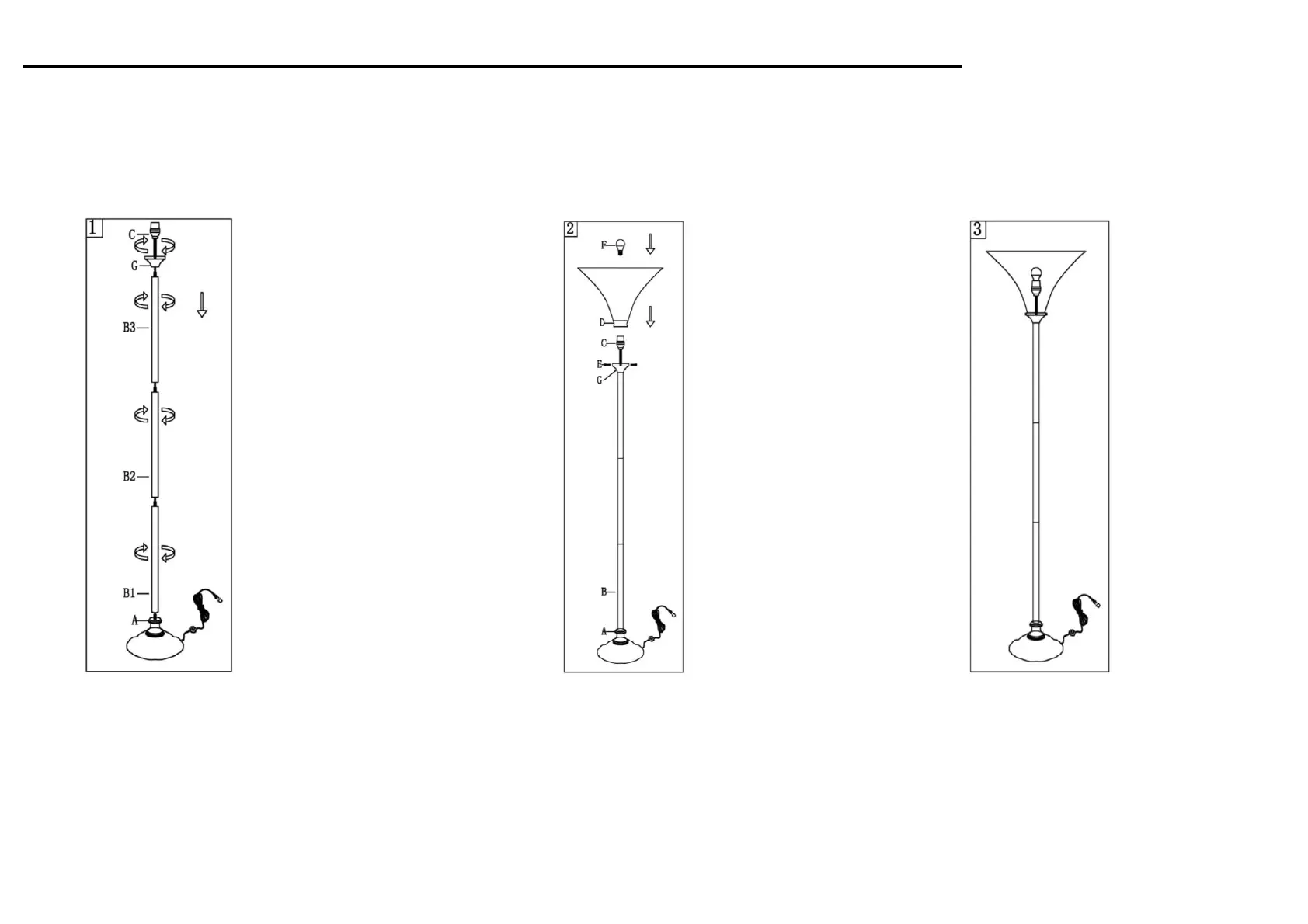 Screw the Lamp body (B3) onto the Lamp body(B2) Insert the bulb(F) into the socket(C).