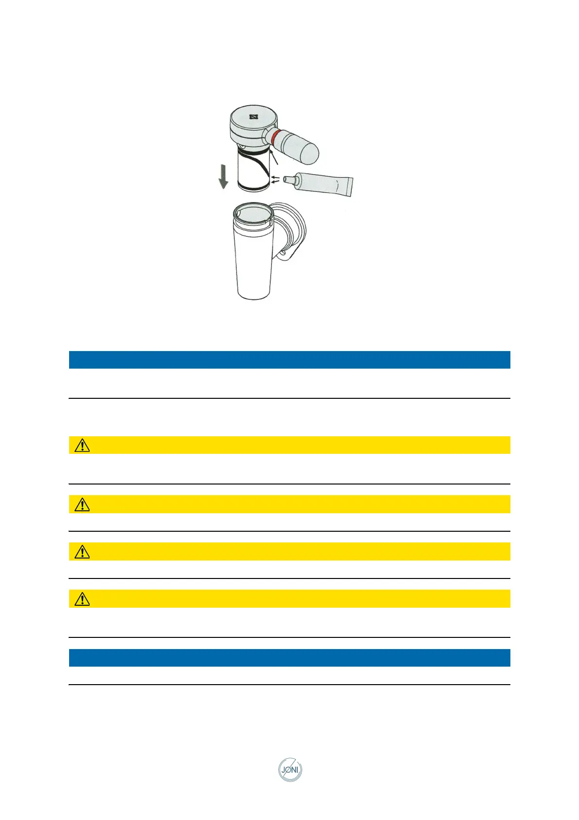 The valve gaskets must be lubricated every time before use, with special fitting grease.