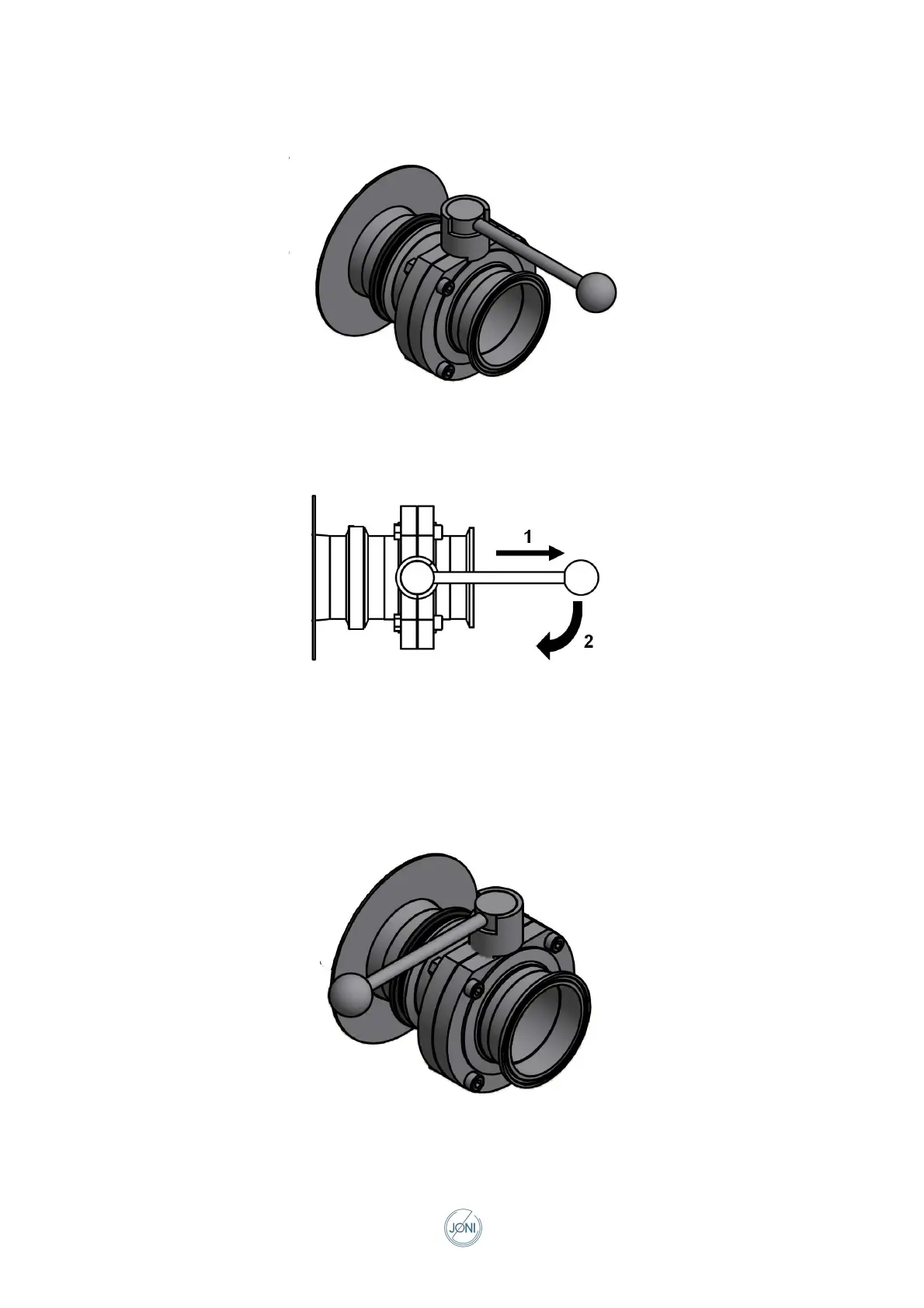 2 Handle is turned 90° towards the kettle to open the valve and when the handle is released, then the